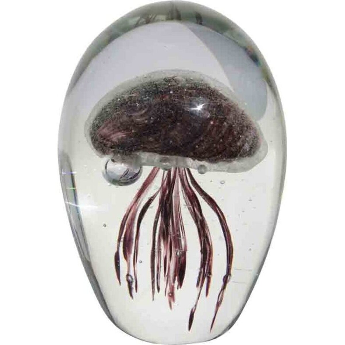 The Glass Weight - Jellyfish - Black artistically mimics a fossil by encasing a life-like replica of a jellyfish in a beautiful glass bubble. Combining the stunning details of the jellyfish and the gorgeous polish of the glass ball makes one fine and luxurious-looking home décor.