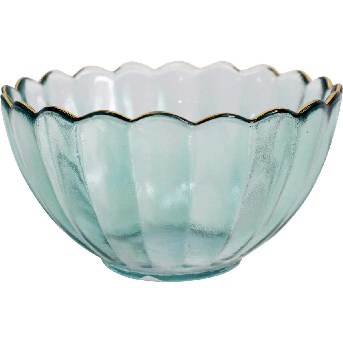 That ribbed texture gives it some interesting light play and the gold accent, well, it just makes the misty blue feel richer somehow. Just keep in mind this isn’t dishwasher safe - gentle handwashing only, please - and try not to stick stickers directly onto the glass because it can leave marks. We’ve made sure the bowl comes packaged in foam for safe shipping though, so no worries there. This is definitely one of those pieces that adds visual interest even when empty - which let’s be honest, doesn’t always happen with bowls! And we think customers are really going to love that about them.