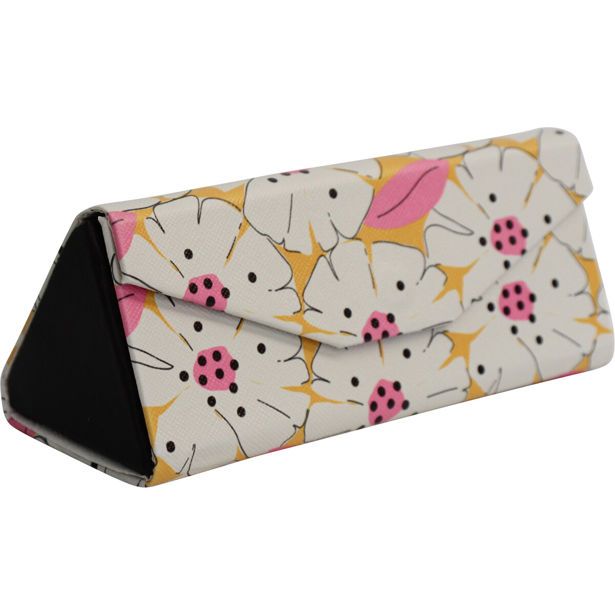 Whether to place in your bag pack, your everyday use purse or the glove compartment of your car - this case will ensure the safety of your most important accessor - your glasses. The foldable design help it remain as compact as it can be. The magnetic clasp keeps the flap which covers its front, firmly in place, the triangular design makes it sit on flat surfaces. The pretty floral pattern on this pen will add t its stylish deign. An everyday use optical accessory which is perhaps as imperative as the use of glasses as you need to keep them safe from any kind of damage. The PU cover ensures that it shall remain water resistant as well. Folds into flat shape to make it even more compact when not in use.
