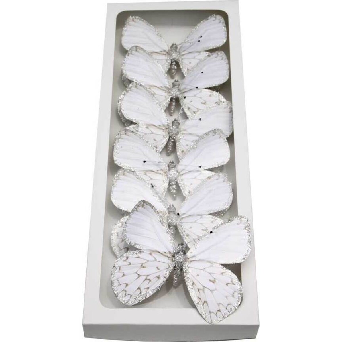 Each of the six white butterflies features pale grey detailing on the wings and silver glitter along the edges. At its center, the grey abdomen, thorax, and head is also dusted with a little shimmer and shine. They add just the right amount of sparkle to your home without going overboard. The butterflies are perfect to incorporate into a bouquet of flowers or a centerpiece, or to add onto your wall or hang on your porch. They're so lovely and elegant that they would even make the perfect addition to a wedding.