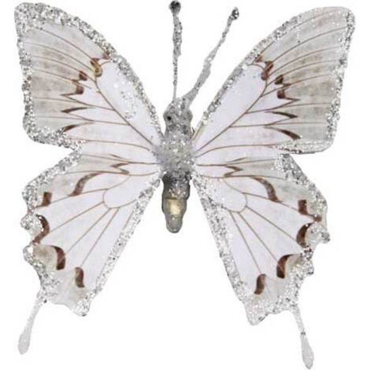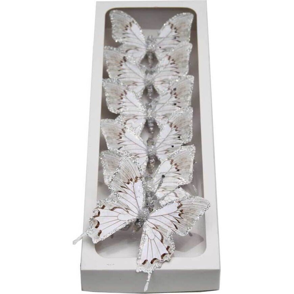 This set of White Grey Shadow Glitter Butterflies from LaVida have all the beauty that comes with the real deal. These six beautiful decorative accents are white in colour, have light brown detailing across the wings, and feature silver glitter along the edges and on the abdomen, thorax, antenna, and head. They would look wonderful on the curtains, sitting on your plants and flowers, or simply placed haphazardly around your home. Considering their style and design, they would also make fabulous accents for a wedding or formal party. Their exquisite style and beauty won't go unnoticed.