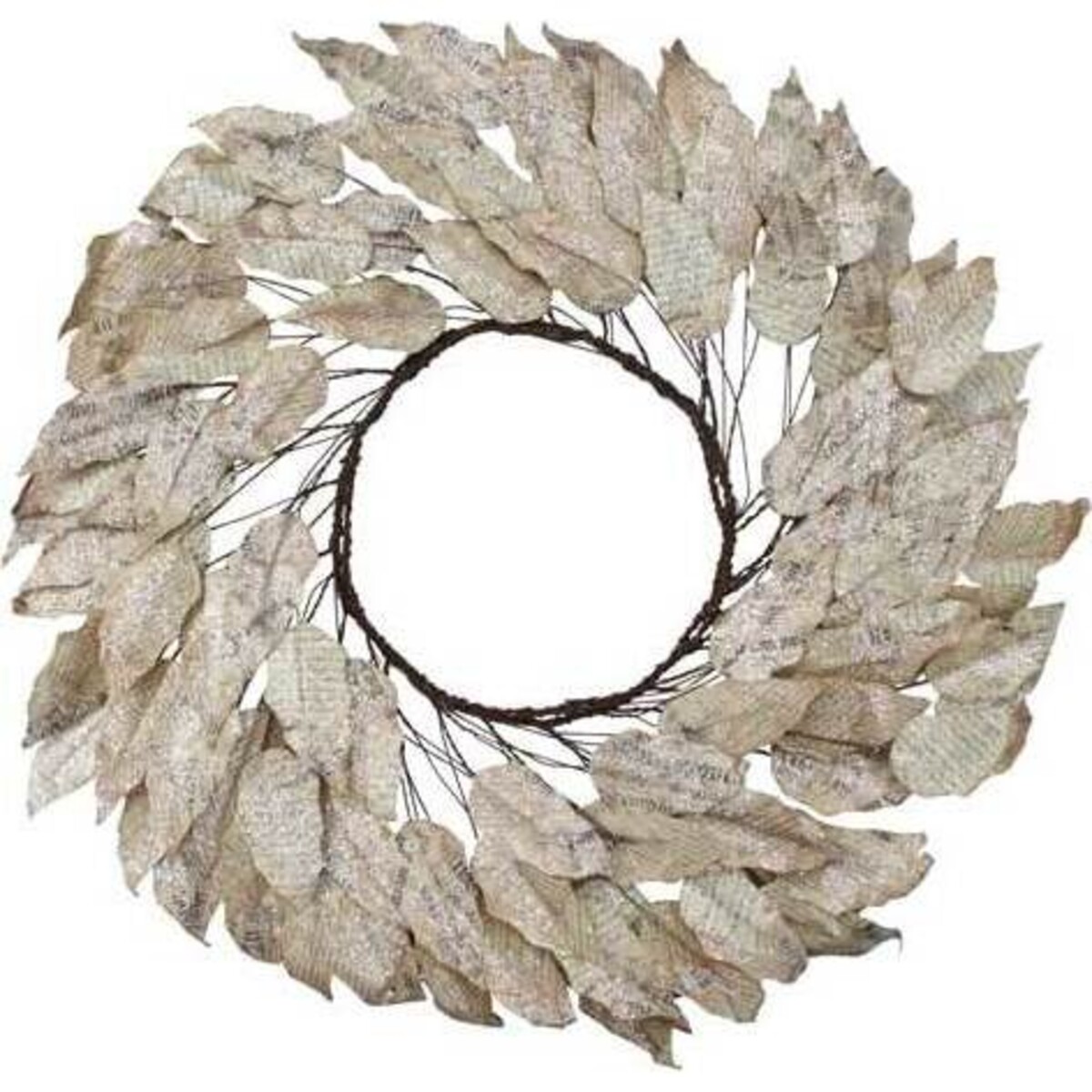 This fabulous decorative accent consists of leaves that appear to be cut from aged newsprint and formed into a wreath shape. The entire piece is dusted with glitter to give it a little shimmer and shine. While it's ideal to use for its intended purpose as you can hang it on your front door or inside your home, you can also lay it down flat and place a pillar candle in the middle to create a centerpiece. Thanks to its neutral colouring, it can complement almost any style of d??cor in your home.