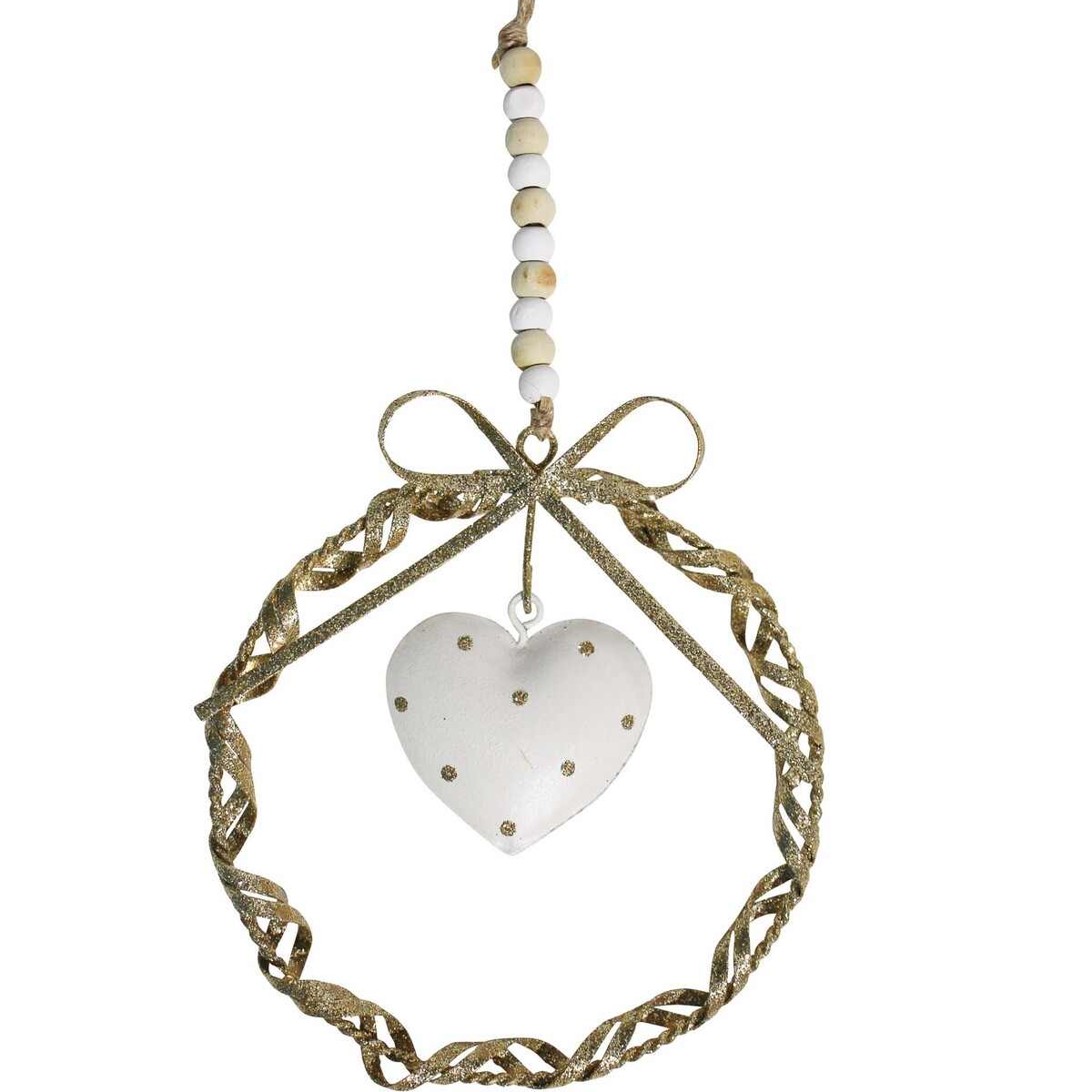 This Gold Twist Wreath Heart is such a sweet little ornament. It's got just the right mix of eye-catching sparkle and classic style. The gold-twist wreath frame, measuring 13 by 11.5 by 1 cm, adds this lovely bit of shimmer - not too over the top, just enough to catch the light. And hanging right in the middle is a sweet white heart with soft gold dots that really pops against the metal. Some customers hang it for Christmas, but honestly, it's one of those pieces that works year-round. It doesn't scream festive at all.