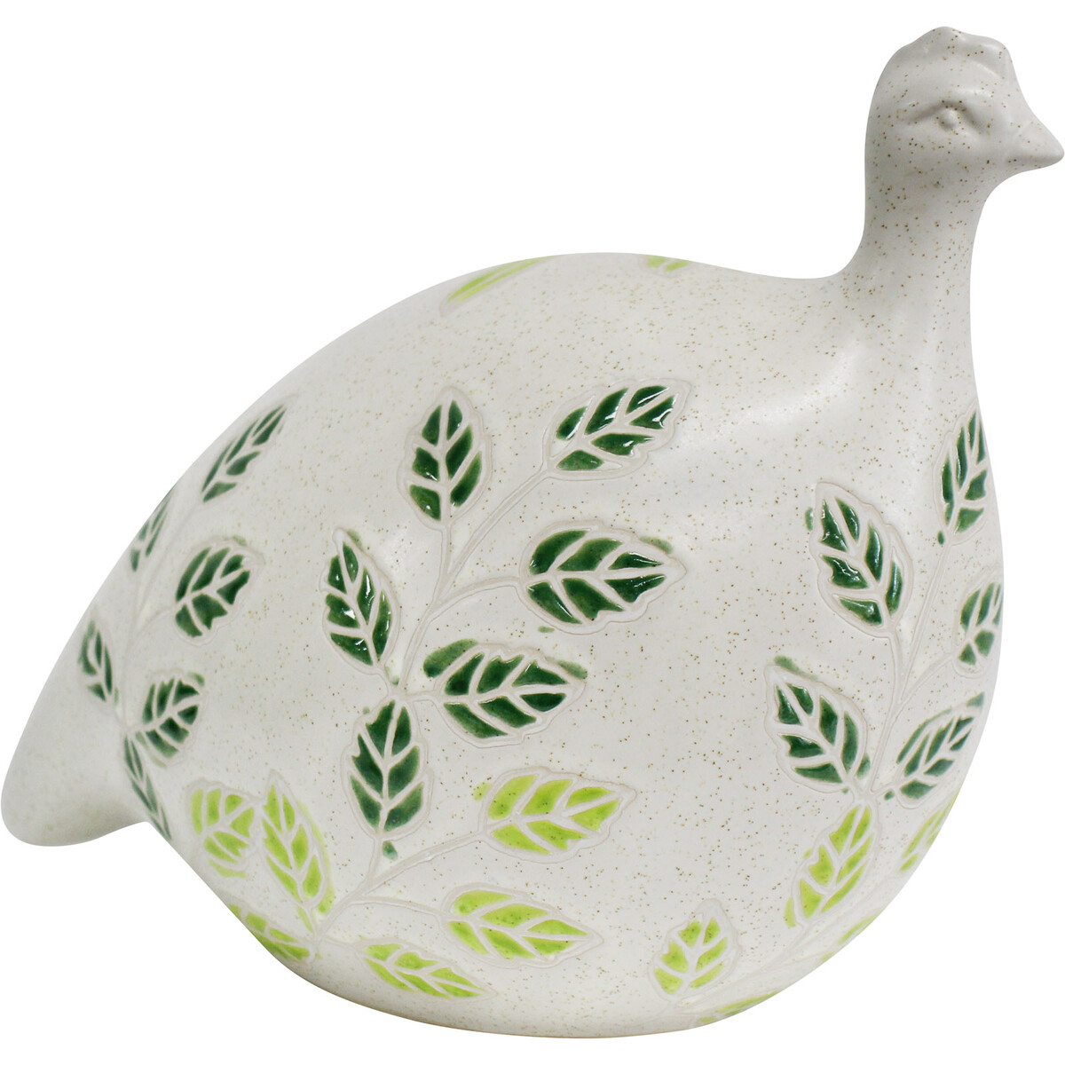 The Guinea Fowl Leaf is a large sized ornament that possesses an uncompromising aesthetic appeal that would be perfect for use in brightening both interior and exterior spatial décor. Irrespective of where you choose to display it in your shop, it will catch and sustain the attention of your customers as it is made in the motif of the cute guinea fowl. It is then hand painted in an alluring colourful plant pattern.