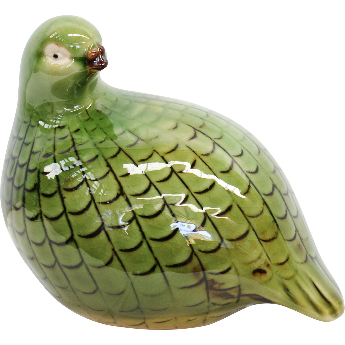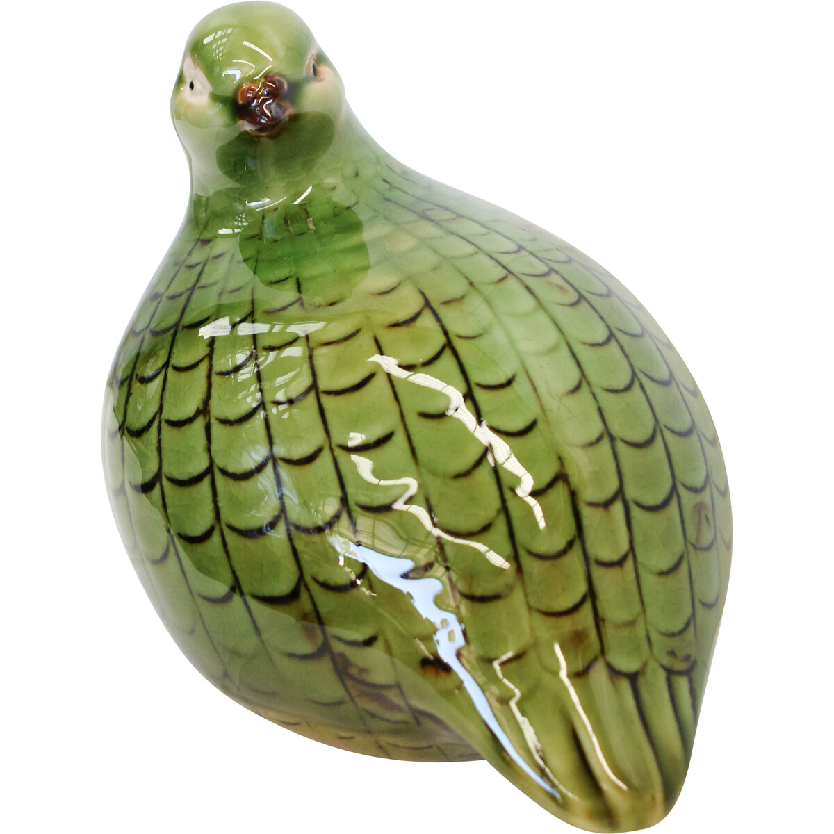 This small Guinea Fowl Bird showcases the bird in a squatting position as if in a roost. It is wholly made of ceramics and then lacquered with a rich, colourful green. It has an immaculately smooth texture and a beautiful pattern resembling that of the fowl's feathers. It would be a perfect choice for interior decoration such as kitchens, dining table and even parlour centre table. It weighs 0.45 kilograms, 14.50 centimetres in height, and 16.50 centimetres in length. There are 18 beautiful pieces in every carton you order for. Customers should keep out of reach of children as it can break if it falls.