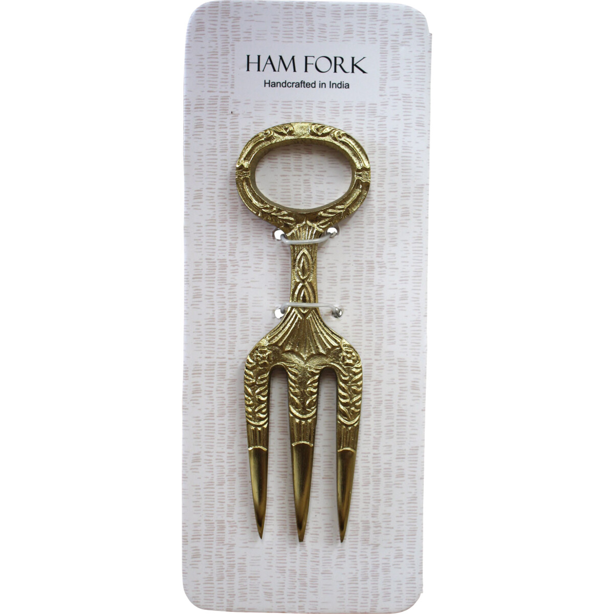 An elevated, luxurious experience awaits you every time you dine. With this brass ham fork, every meal becomes sought-after, easier to eat, and more relaxed. Make dinner time a moment that you use to treat yourself and unwind. With this ham fork that has a delicate detailing and a cutout for better grip, every time you're entertaining guests, you'll become the host they love. Whether it is a cosy get together on a summer evening or a winter barbeque, this brass ham fork is your meat staple for a long time. Its durable material and strong design combined with its stunning looks make it a perfect decor piece as well as a useful item in your cabinet. Paired with opulent cutlery, this ham fork will soon become a party essential and a staple for days you are serving meat.