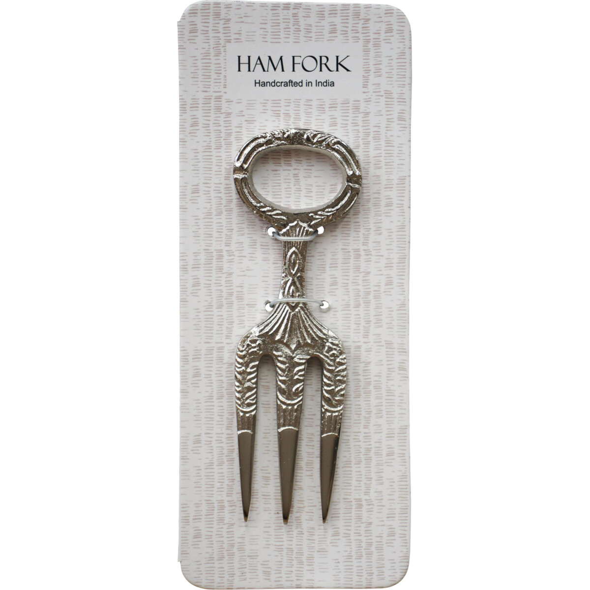Make dinnertime and celebrations grander with this beautiful and intricate brass ham fork in a stunning silver colour. For meat lovers and collectors alike, this ham fork comes equipped with a cutout for better grip and comfort. Bring together your family for a festive time or just share a meal with a loved one, this silver coloured brass ham fork is a perfect addition to each and every moment. With a touch of royalty combined with the vintage-like charm of the country, this ham fork adds a little bit of traditionalism to the modern Australian home. Not only this, but these ham forks also make for perfect housewarming gifts since homeware and kitchenware is a necessity in new homes. Add a touch of sentimental value and utility to your gifting all while keeping it classy and luxurious with this silver ham fork made out of sturdy brass.