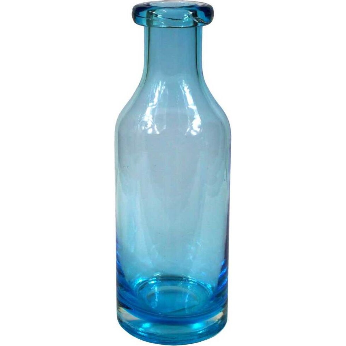 These glass bottles resemble old school glass milk bottles and feature a vibrant blue hue and an exaggerated lip. While they're great to display as is, you can also use them as serving pieces for orange juice at breakfast iced tea in the afternoon and any other cold beverage you have throughout the day. You can also use these glass bottles as vases and fill them with either one or two large flowers or a small bouquet.