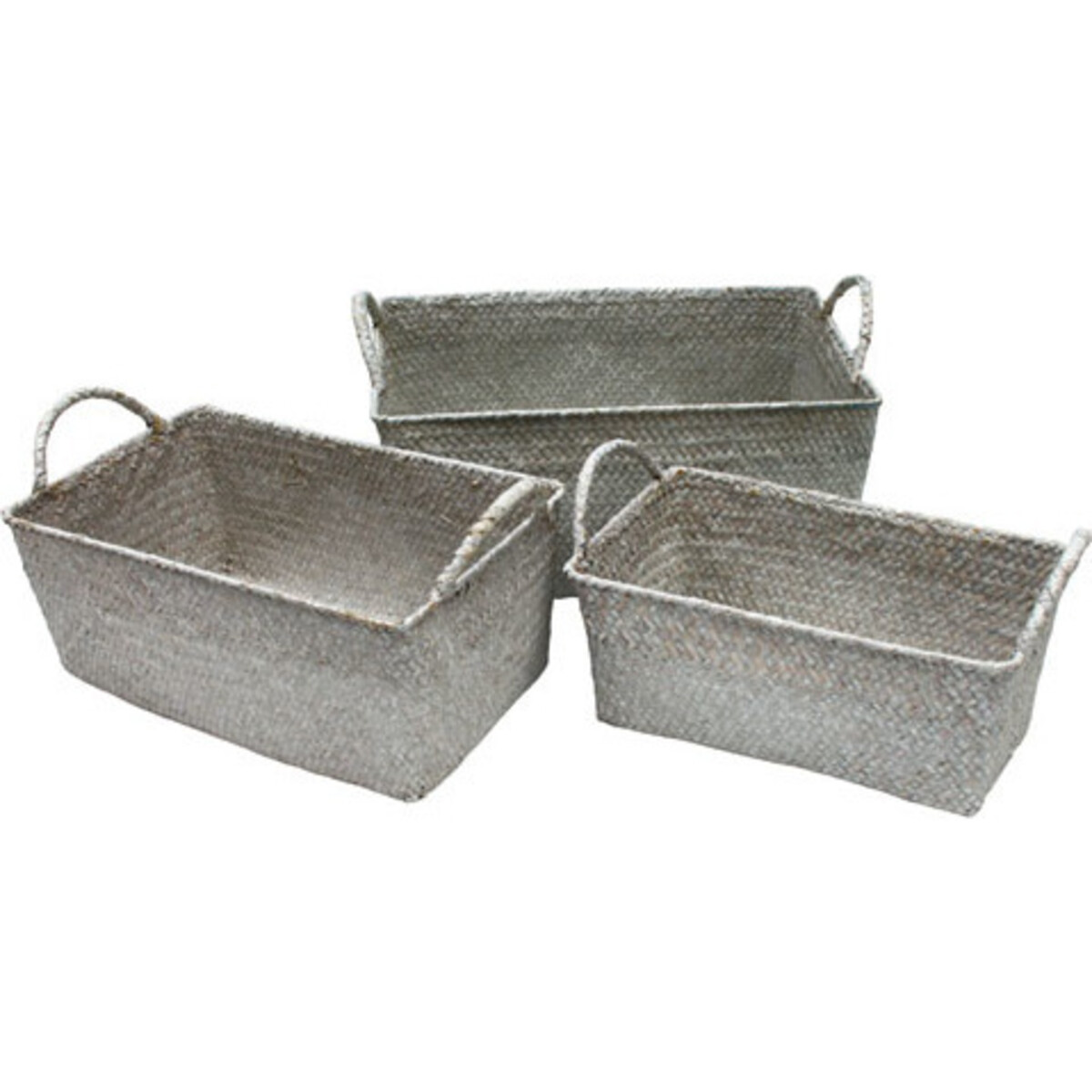 Baskets are one of the most versatile ways of keeping the clutter at bay and also work well to keep important things not juts well within one's reach but also make them look attractive in their containers at the same time. This set of baskets comes with sturdy handles woven along the main body of the baskets thus giving them the advantage of being carried to any place or any part of the house. Placed anywhere they lend a natural raw kind of beauty seldom seen in households filled with synthetic materials. The feel of the weave is smooth, yet the basket has the resilience to take on heavy loads as well –like clothes and stationery. Kept in the children's room it would make the perfect space to store toys. Kept inside cupboards, tiny clothing, handkerchiefs and socks could be kept better organized in them. The usage in the kitchen could be for keeping fresh herbs, leafy greens and any kind of extra supplies .A greatly versatile set to have around.