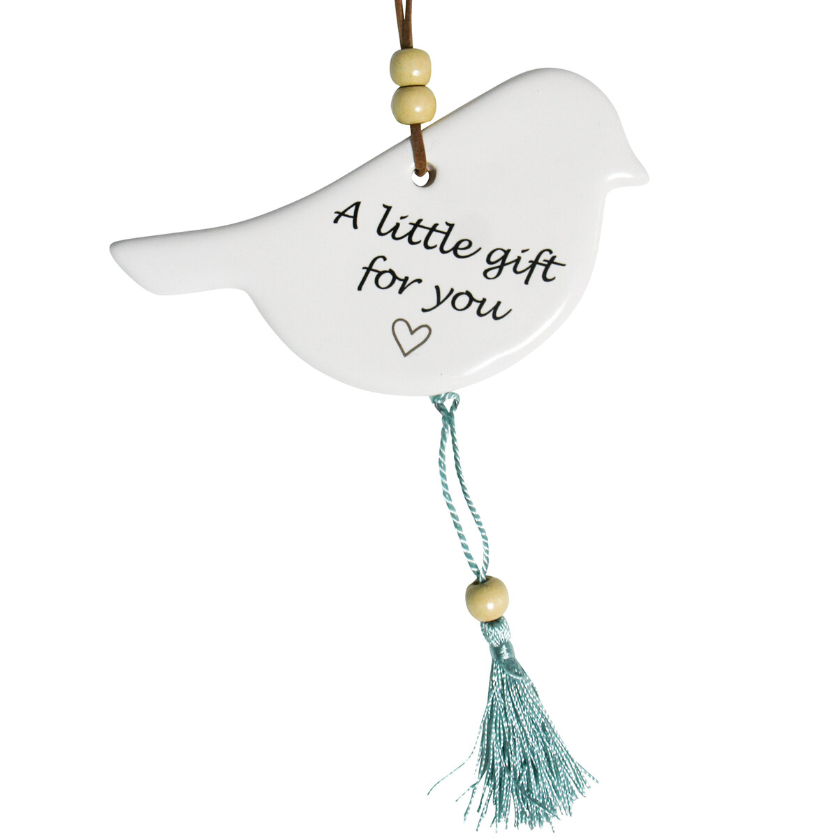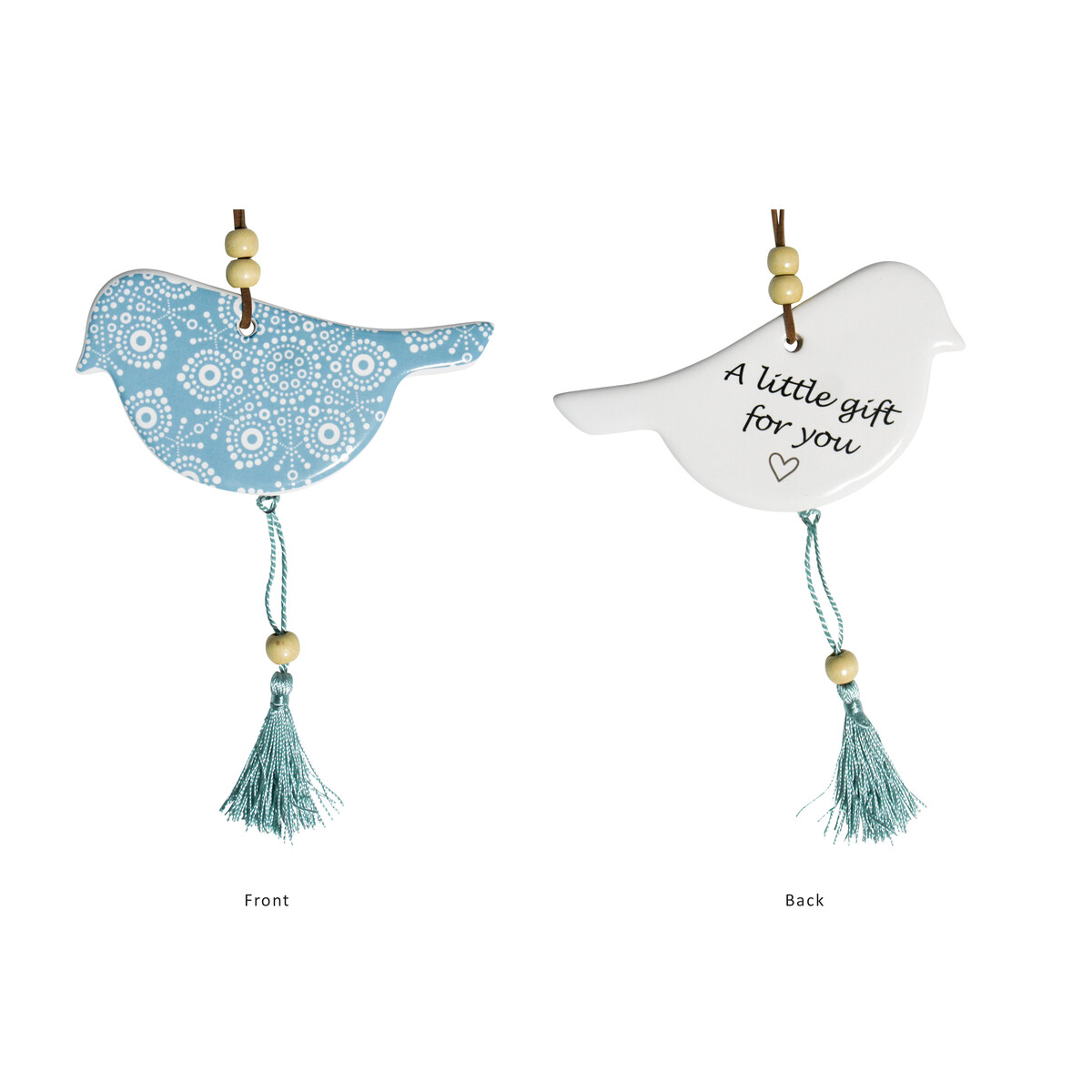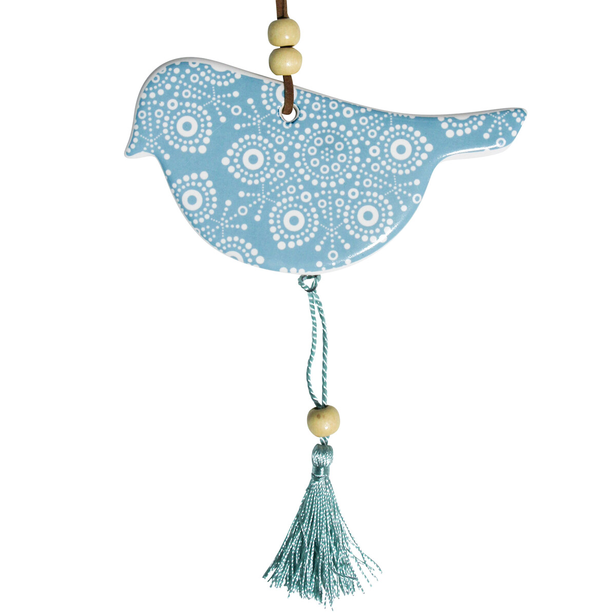 We find the Hang Bird Indigenous Aqua truly charming. It’s got a certain warmth to it - you can tell from the look and feel that it’s handcrafted. There’s a special joy in knowing each piece is unique, with its own quirks - little ceramic flecks, those brush marks in the print, or tiny imperfections that speak to the individuality of the artisan. These aren’t faults, not really. They’re what make each bird feel like a genuine gift, which is fitting considering the “A little gift for you” script right across its side.