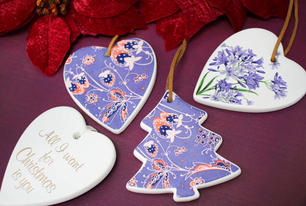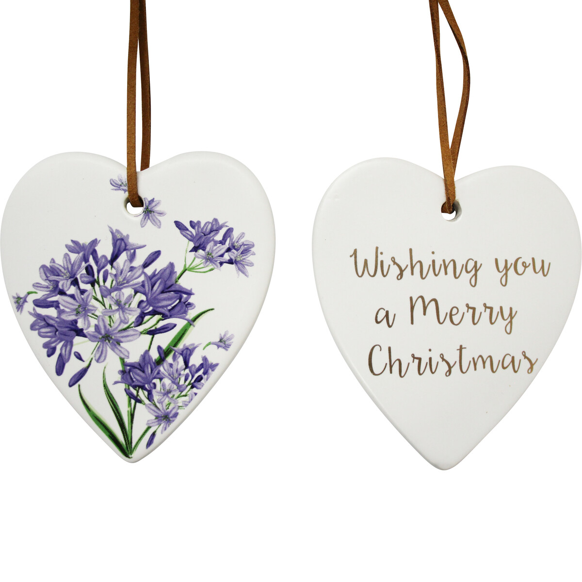 We have always been firm believers that heartfelt gifts go a long way. The ones that are just that little bit more personal than the rest. Our Hang Heart Christmas Agapantha ornament is one of those gifts. The heart shaped decoration makes it ideal to share with friends and family, or even to hang on your Christmas tree as a celebration of love and friendship within your home. And, our beautiful Agapantha design is printed onto a handcrafted ceramic heart and finished with an elegant brown hanger for a dainty touch - so it's unique and versatile. We do suggest handling it carefully though, as it is a delicate ornament after all. The imperfections in the print are entirely deliberate! It's part of what makes these hearts so wonderful. For anyone looking to make their Christmas decor unique, these hangers are a great option. They sit at 8x9cm with the added hanger, making them the perfect size too!