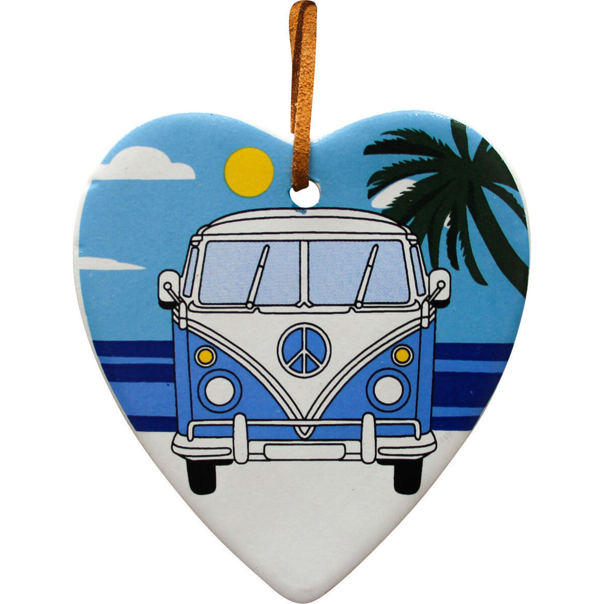 The charming scene in this handcrafted ceramic heart features a camper van parked on a sandy beach basking under the sun on a lazy afternoon. This is a brilliant way to add character to any space and is sure to bring some joy where ever it is hung. It will also serve as a simple playful piece or a lovely beach accessory for a nursery, children's bedroom or the master bath. Not only will it look fabulous within the home, but it can also be used to decorate events such as beach parties and weddings.