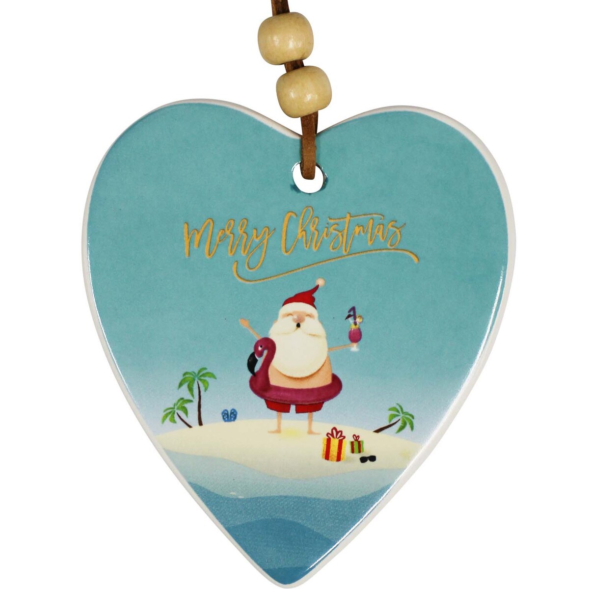 This Hang Heart Paradise Santa ornament is a playful little piece that manages to feel lighthearted but still well-made. It’s crafted with a ceramic heart shape and attached leather hanger, which makes it look more expensive than you’d expect for something so small - 8 x 9cm, excluding the drop from the beads and leather. The real attention grabber is the design itself: Santa’s on holiday, arms up with a beach drink in one hand, presents and sunnies at his feet, all surrounded by palm trees. And then there’s the classic “Merry Christmas” in flowing cursive above him. It’s a fun, summery twist on festive decor that’ll suit anyone who prefers a sandier take on Christmas - think tropical homes or offices that need a little tongue-in-cheek charm.