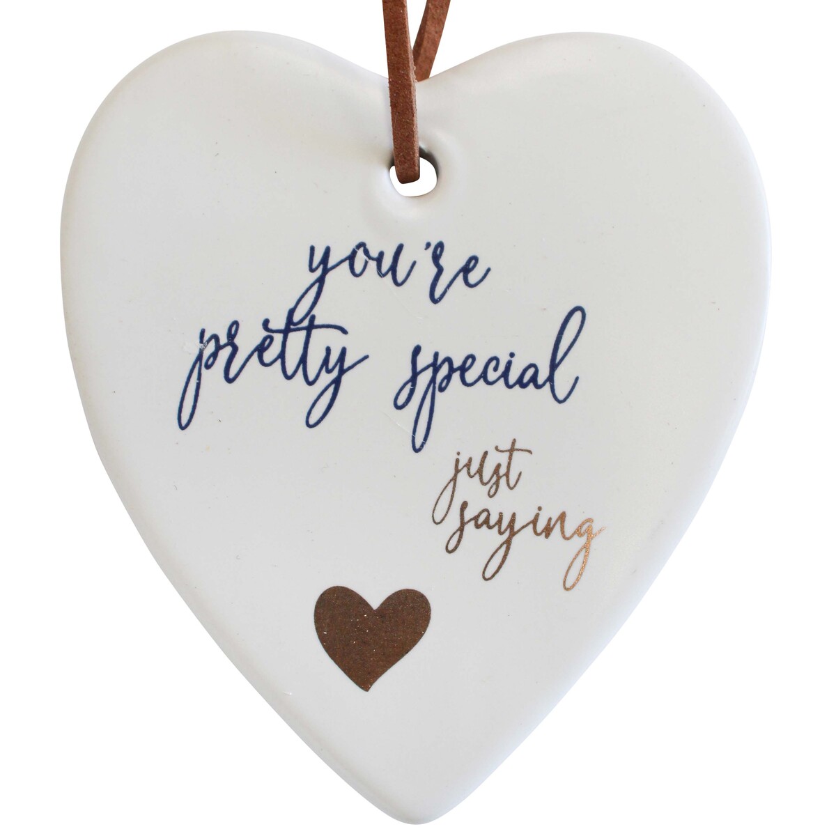 Suitable for gifting on special festive occasions such as birthday celebrations, Christmas celebrations, New Year celebrations, birthdays, anniversaries, and just about any other festivity. There is also no need for customers to wait for special festive occasions, they can gift it to that special someone on just about any day of the year. Though it is an inexpensive decorative item, it possess a charming ornamental appeal while also helping convey just how special the recipient is via the words written on the hanging heart's surface. The words read "you're pretty special, just saying".