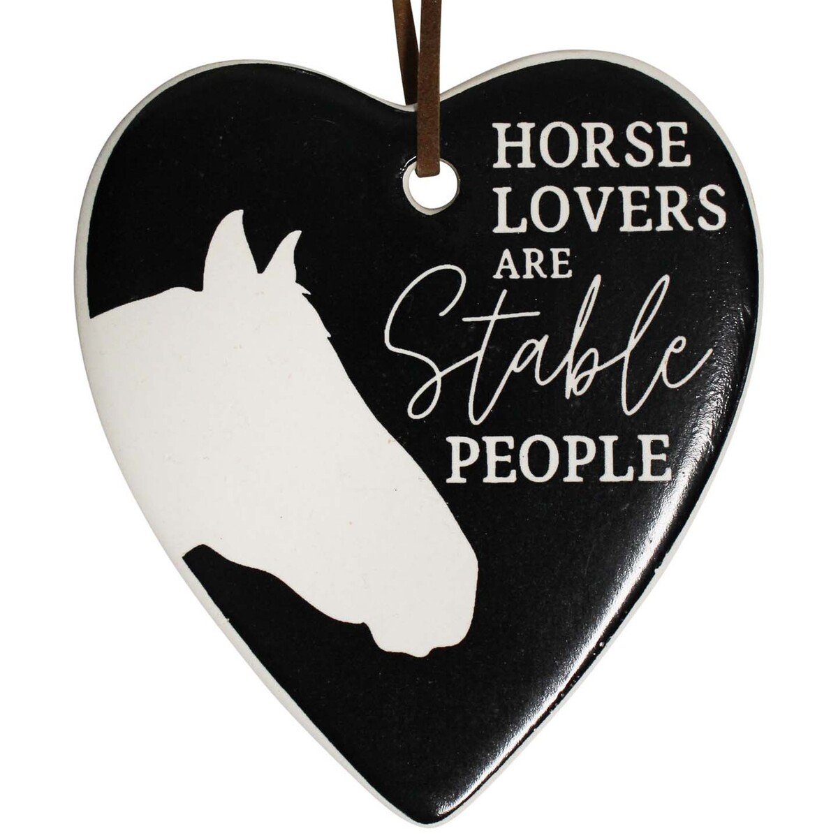 Hang Heart Stable People features a white font that makes it stand out from the others, and its heart shape is decorated with etchings that send off an amusing yet meaningful message "Horse Lovers are stable people." The heart-shaped design is both chic and eye-catching, instantly elevating one's interior. To make hanging effortless, this piece has a strong brown rope that homeowners can use to hang the item securely on any wall or mantel and even as an eye-catching display by attaching it directly to their doorknob. Crafted with care and precision, the Hang Heart Stable People is constructed from quality materials to guarantee strength and reliable use over a long period.