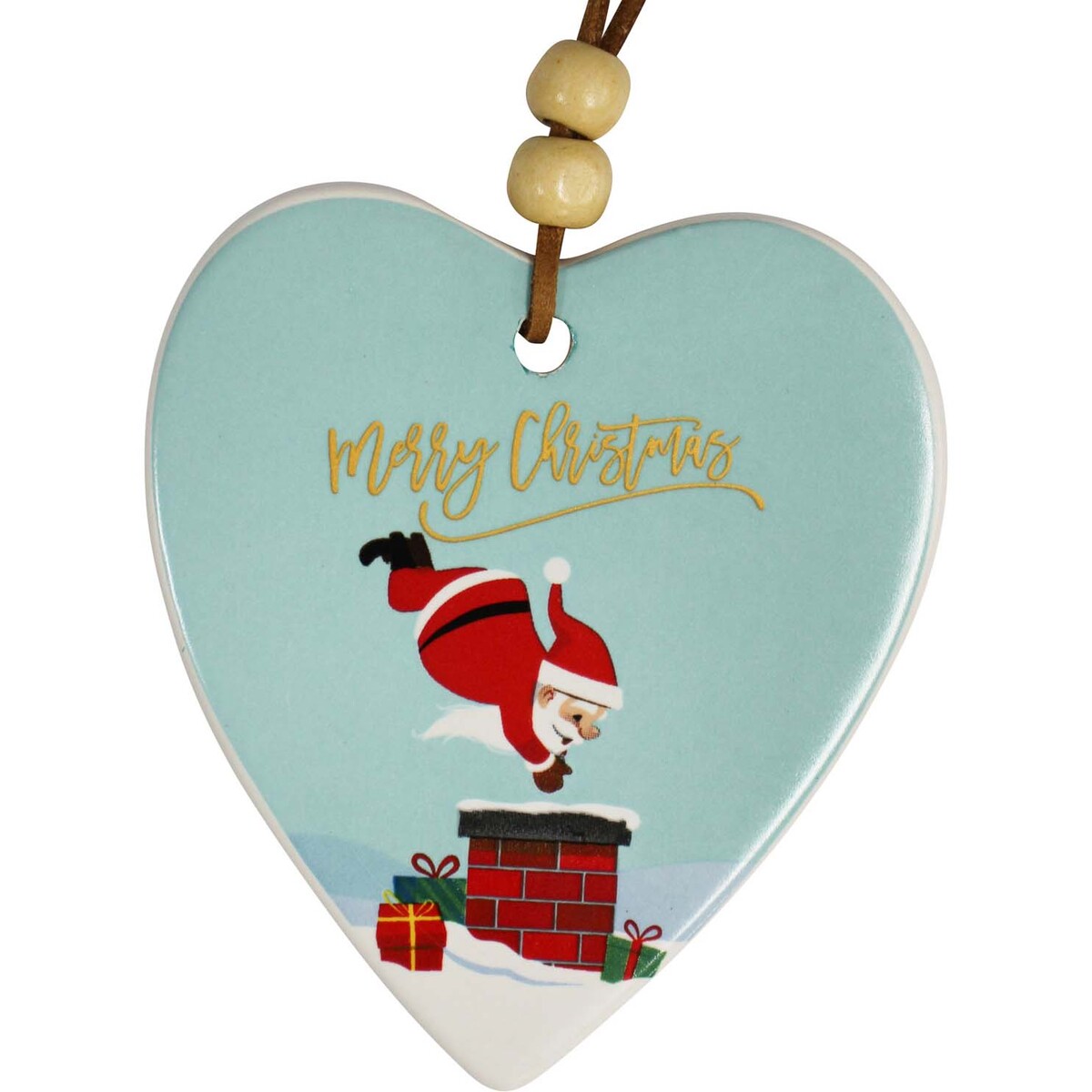We’ll admit, it’s not every day we find a Christmas decoration that manages to be both playful and beautifully crafted. Our Hang Heart Super Santa is one of those rare finds - there’s something about the jolly image of Santa headfirst down the chimney that has a charm all its own. Measuring 8x9cm (plus the hanger), this heart-shaped ornament is made from ceramic with a sturdy leather loop. It’s topped off with two wooden beads for a nod to traditional Christmas styling.
