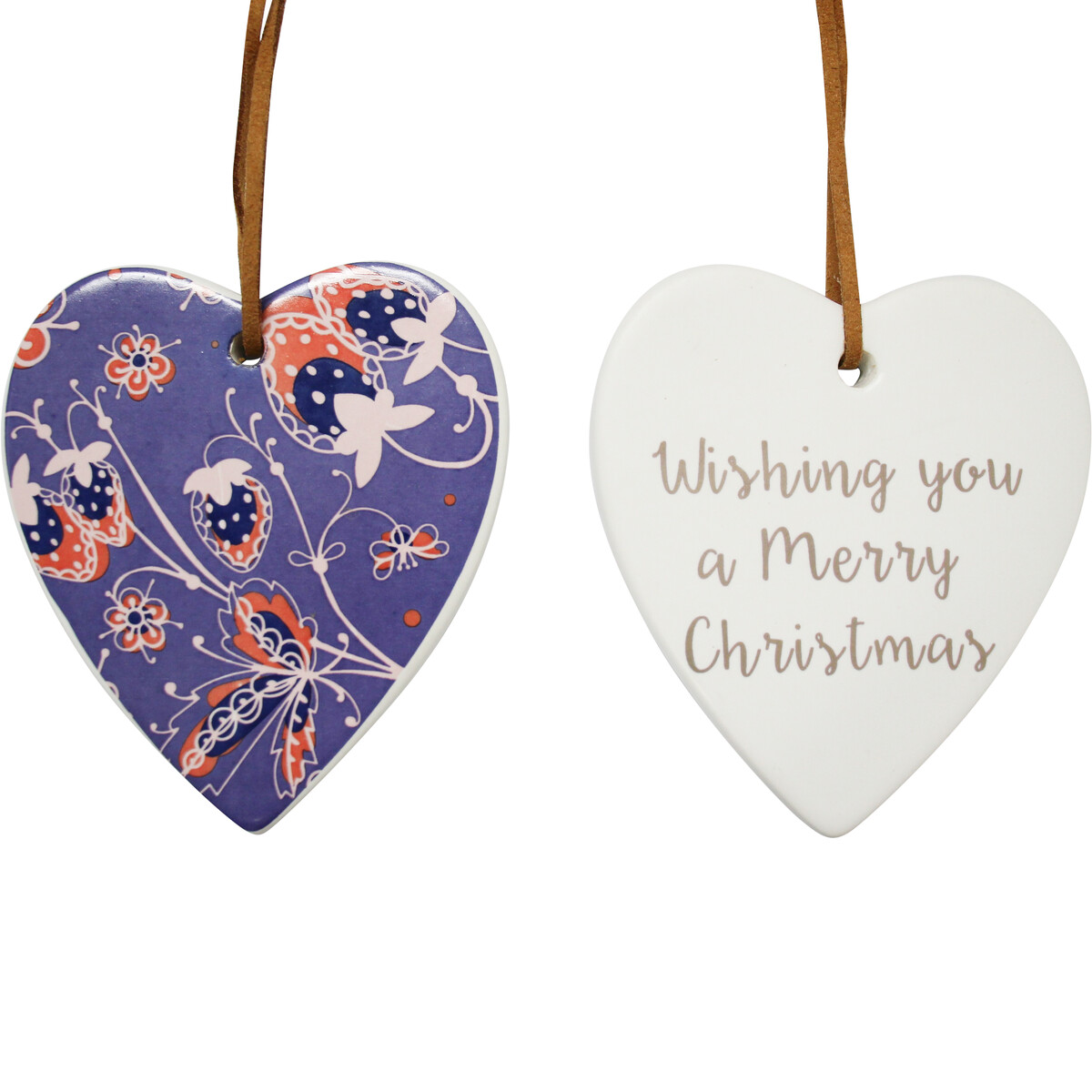 It is handcrafted and finished in ceramic, so naturally every heart is unique - some will have little imperfections in the finish or printing, but this all adds to the charm. We think customers are starting to prefer individual pieces with a more personal touch. There’s something about gifting a heart-shaped ornament like this that feels right around Christmas time. And at 8x9cm with a hanger, it works beautifully as a tree ornament or decorative accent around the home or office.