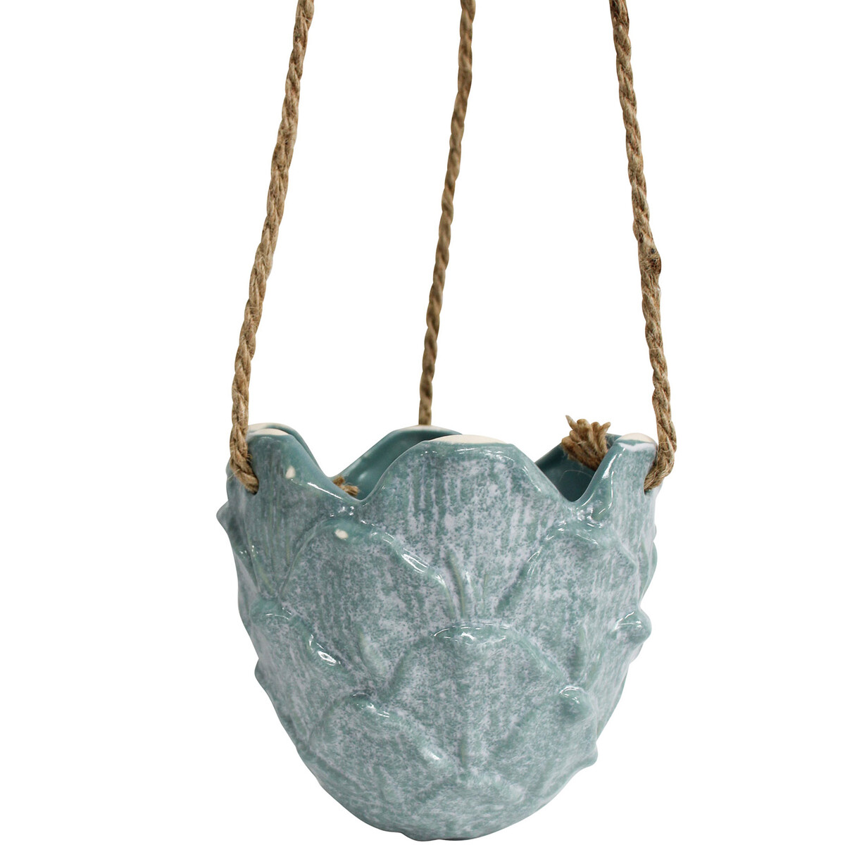 Showcasing a unique design achieved through the use of pure quality ceramic material and individually hand painted and glazed finish, it is no wonder that this Hang Planter Shell Jade Med makes an aesthetic statement which your customers would find to be perfect for their various decorative purposes. What is particularly appealing is the hanging display option which it comes with as there are three pre-attached ropes through which it can be hung up in various strategic locations in private, official and public spaces.