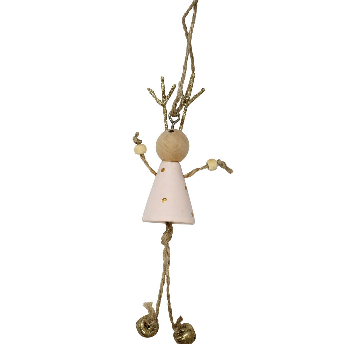 Celebrate the arrival of winter by hanging up this alluring reindeer in the colour blush. This is the perfect decoration to put up during any occasion, be it a housewarming party or even a birthday! This wonderful blush reindeer is made with the best quality and taut string that doesn't break easily and lasts a long time. This reindeer hanging is handcrafted with wood and a blush body with beautiful bells dangling from it at the ends of it. This lovely reindeer looks good and is appreciated by guests who visit! This reindeer decoration looks good in any corner of the house, especially dull corners in the living room or in the kids' bedroom. These charming blush coloured reindeer make for a wonderful present for friends and family who appreciate the winter and love reindeers!