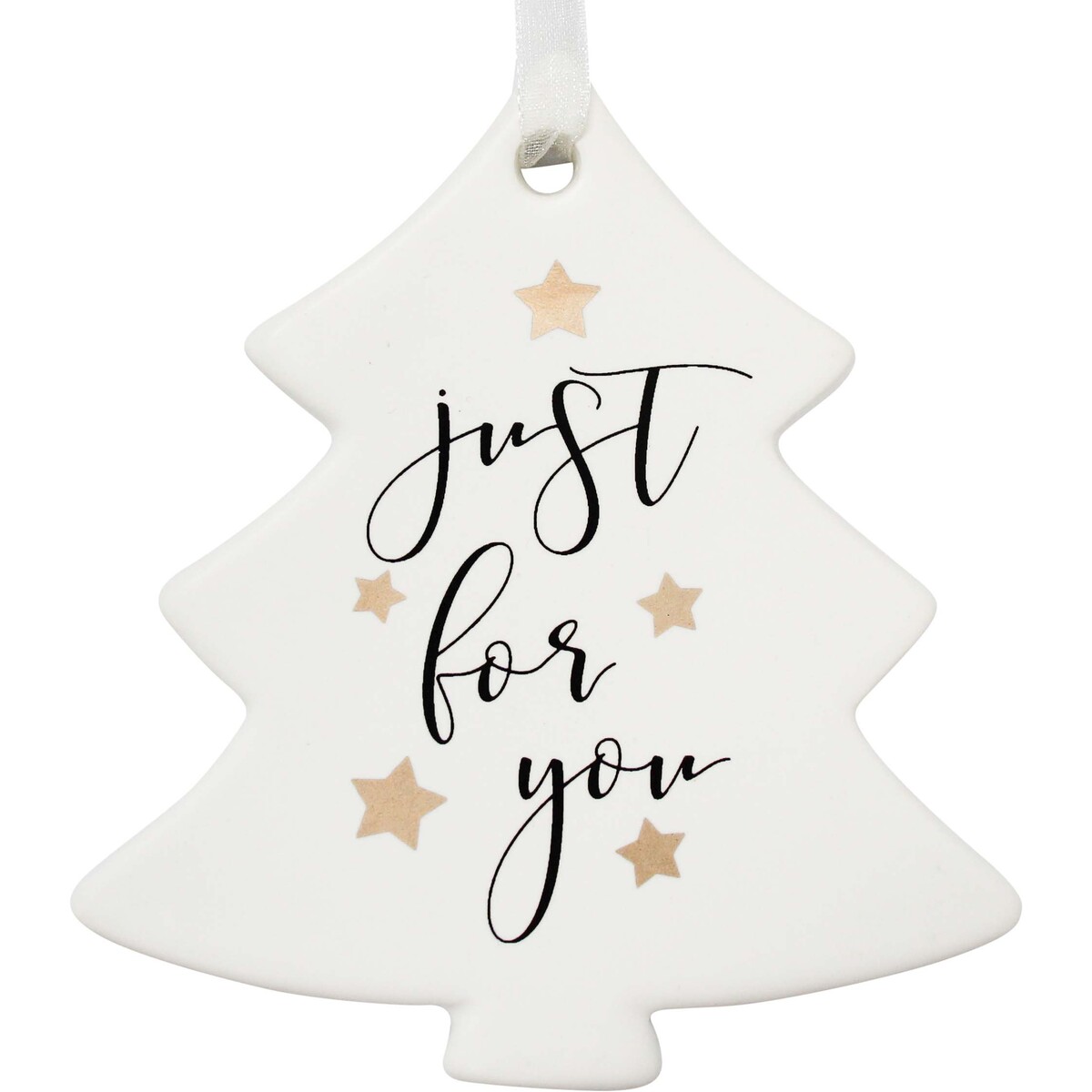 The shape of the tree has bene beautifully created with the help of ceramic. All white and very smooth in its texture. It has three words printed atop its face - in gold - and that make all the difference to the reason why this makes such pretty little addition to your spaces. While the holiday season arrives, we need to give our homer the feeling of festivity and align it better with the theme and the mood of the celebration around the corner. Why not use tiny little additions that come in such dainty little ceramic handmade accent that could be used in so many different ways. It is as great for using along doorways and windows as it would eb like a standalone d?©cor accent - you could use it like a gift tag or simply hang it from the welcome sign on the doorway. The 9 cm long tree with the grey ribbon slotted through the top will sway and twirl and catch the eye with its prettiness and simple sort of beauty.