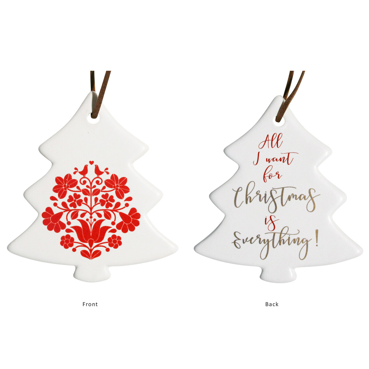 Everyone is always looking for new Christmas decorations, and our Hang Tree Red Wreath is a fun addition for the season. It’s a ceramic tree-shaped hanger that’s fun and a little quirky - “All I want for Christmas is Everything!” I mean, it’s true! That sums up the holidays quite well. It measures 8cm by 9cm, plus the hanger, which makes it just right to hang on doors or walls without taking up too much space. But it definitely does stand out and make people smile. It can be used all over the house to add a little Christmas cheer - hang in on any door or wall, really. Even office walls! Another thing we love about it is that it’s handcrafted with lots of care, which means every single one is completely unique. There will be imperfections in the print and ceramics, but that’s what gives them their charm!