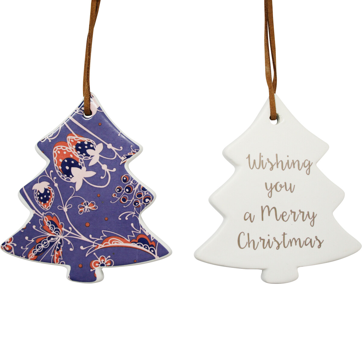 It is crafted from ceramic which gives it a lovely touch and durability. It isn't your standard plastic ornament and has been hand-finished which means some little imperfections might be visible on the ornament. But it just adds to its charm and makes it special since there can't really be two that are identical.