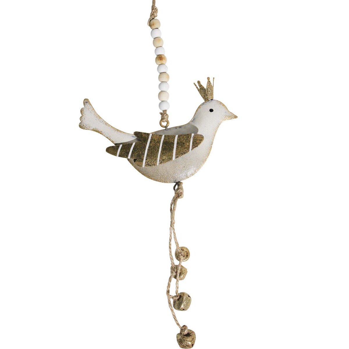 Ah, here's a homewares piece that's always a conversation starter - our Hanging Angelic Bird. It's one of those items that's not just an ornament but a real personality. The angelic bird shape, metal and beads construction, and quirky crown detail are hard to go past if you're looking for something unique for your customers' homes or offices.