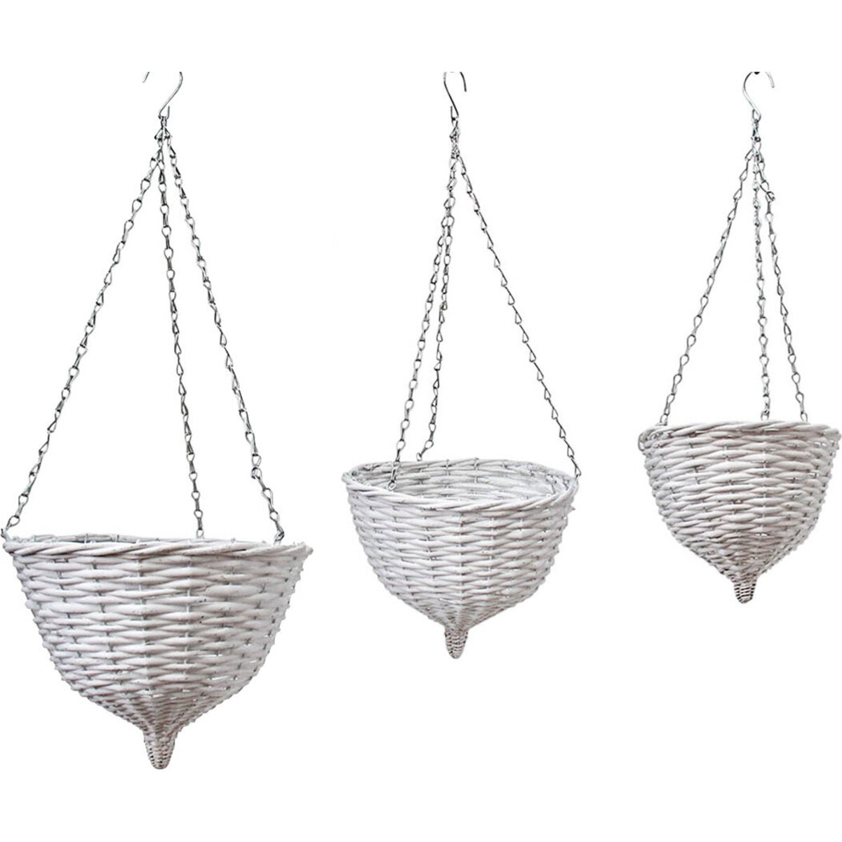 Skilfully handcrafted in a design that is not only aesthetically stunning, but also practically functional, there is no doubt as to the fact that your savvy clientele would love such a classic product as this Hanging Basket S/3 Pointed! One of the most obvious aesthetic statements which these baskets make is expressed through its pristine, rustic white palette which ensures that it can blend into every d?©cor. Another factor is the shapeliness which is nothing short of alluring! For easy usage and hanging option, each of these baskets comes with premium quality metallic chain/hanger which are equally painted in white.