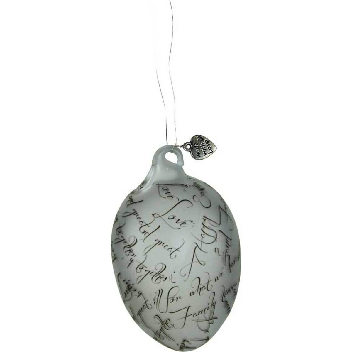 Hanging Bauble Script features a bubble shaped artefact that is inscribed with different writings as a form of decoration. This unique work of art would look great if suspended from a raised point on the wall of a particular venue. Homeowners and events - organizers can apply this device with tact to bring out the exact visual effects desirable. The writings done are stylish and reprinted all across the surface area of the glass bulb. This makes it rather an eye - catching sight to the observer. Several pieces of Hanging Bauble Script can be employed both indoors and outdoors to provide great decorative outcomes.