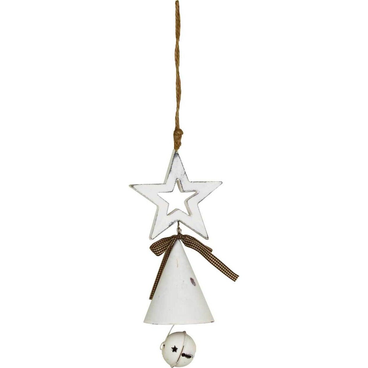 This hanging accent for your home that captures the simple yet real spirit of Christmas through symbols that essentially bring home the meaning of Christmas. The bell and the star - the proverbial Christmassy symbols - one that is most loved in this season and the other that lights and guides us with its brightness though the year. Hanging this 25 cm long and 10 cm wide symbol of gratefulness will help build the spirit of this season in the home. Place this hanging at windows, in the children's room or right at the entranceway and feel the joy and the goodwill sweep in as the winds get chilly. Easy to place on the tree you wish to decorate or any elevated space - the metal body has been given a white wash. The tiny detailing like the check ribbon bow, the twine made of rope makes the look all the more shabby chic and very rustically pretty. Homes can always use this kind of a unique decoration and make the look come together for the cheerfulness one feels in the heart to truly reflect.