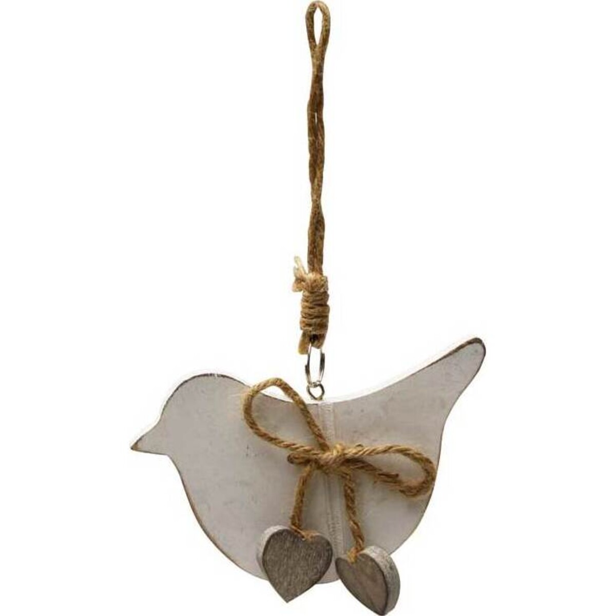 A sweet little bird delivers a message of love in this Hanging Bird Double Hearts from LaVida. This delicate wooden bird, finished with a coating of white paint with areas of exposed wood, is adorned with two tiny wood hearts tied together with a narrow jute rope. The hearts are coated in a distressed white finish, coordinating with the entire piece and adding to its vintage appeal. The bird hangs from a thin jute cord for easy hanging, whether in a kitchen window, on a doorknob, a Christmas tree or anywhere a little love and whimsy are needed.