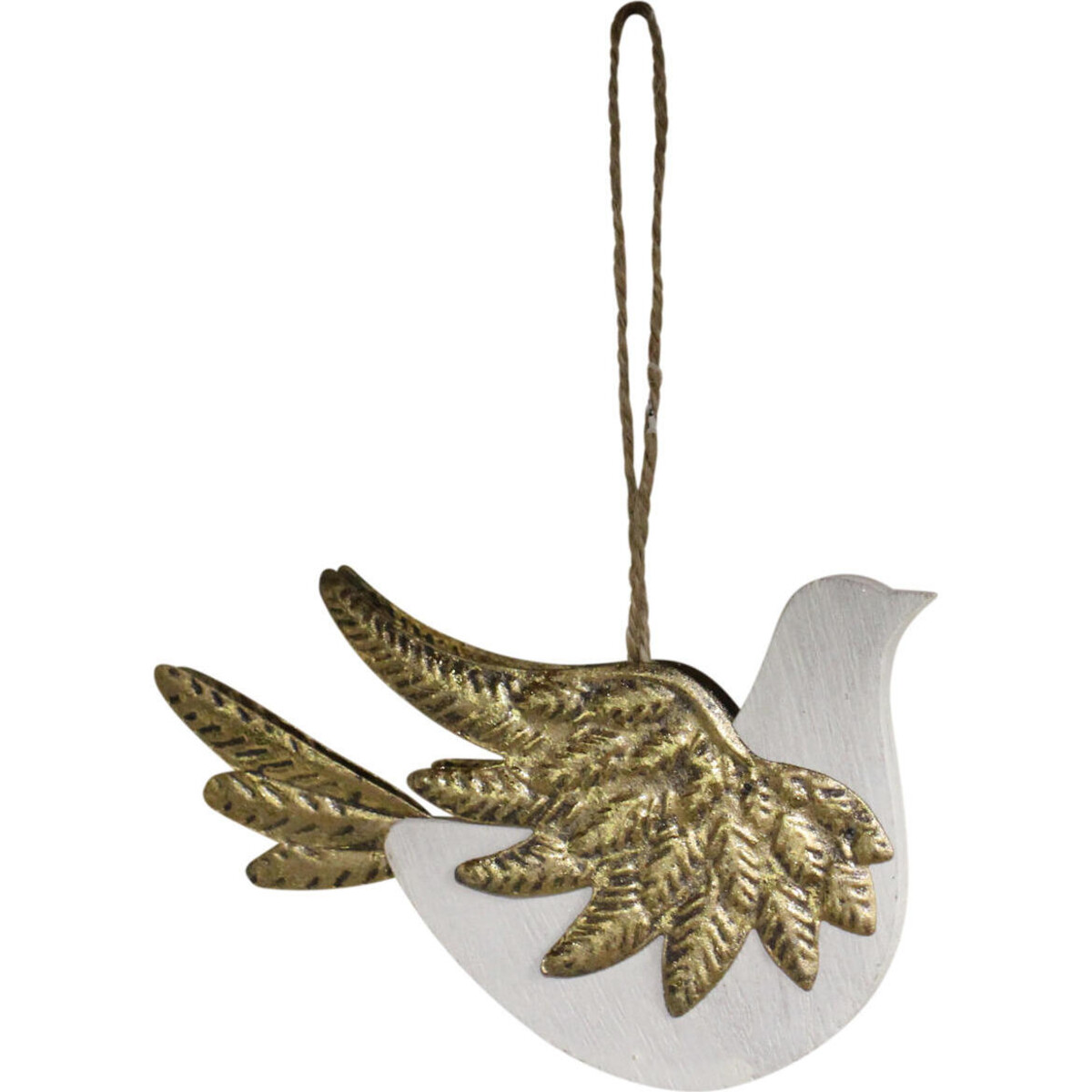 Make your home and spaces ready for the seasonal change with additions in the décor that are simple, handmade and beautifully combine the subtlety of simple designs with a glitter of gold. This dove with its pure white body and a glittery pair of wings delights the space with a simple kind of presence hangable almost everywhere - be it your Christmas tree - the doorway or the windows, the door knob or even the entryway of your home. There is a joyful feel that emanates from things that place the onus of shabby and cheerful associations and such artefact quality accents bring out this joy of a happy season that has its own woodland charm. The gentle look of the dove hanging comes with a design that is well balanced in shape and size.