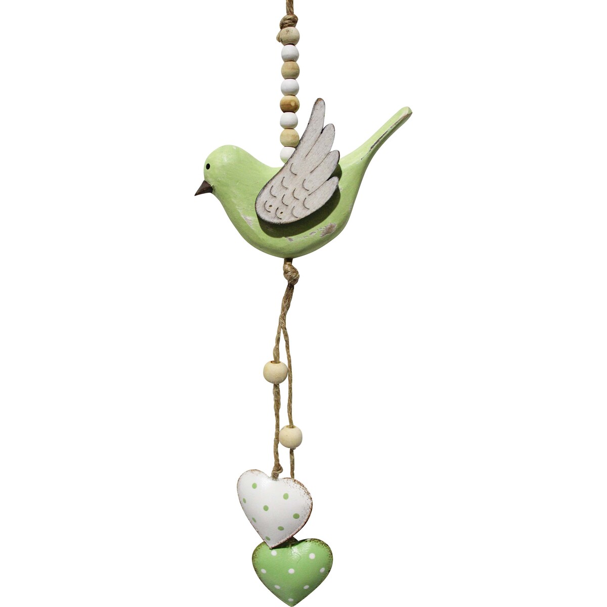 Hanging Bird Heart Sage/white