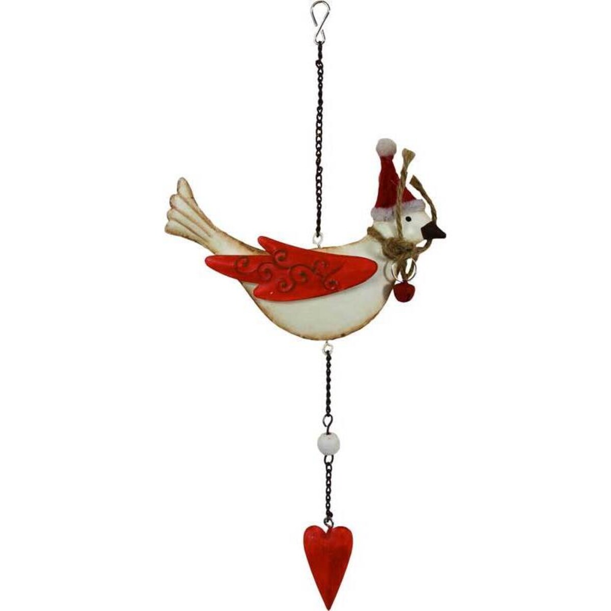 This little cream coloured bird features a red wing, a bow around the neck from which a small bell hangs, and a sweet little red and white Santa hat on his head. Hanging from his belly is a chain that contains a white bead and a red heart. It's the perfect item for those who adore unique Christmas d_cor, who like nature-themed pieces, and who want simplistic yet beautiful Christmas items that don't go overboard. Whether you hang this in your home near your mantel or on your porch, it'll be a beautiful piece to incorporate into your place for the season.
