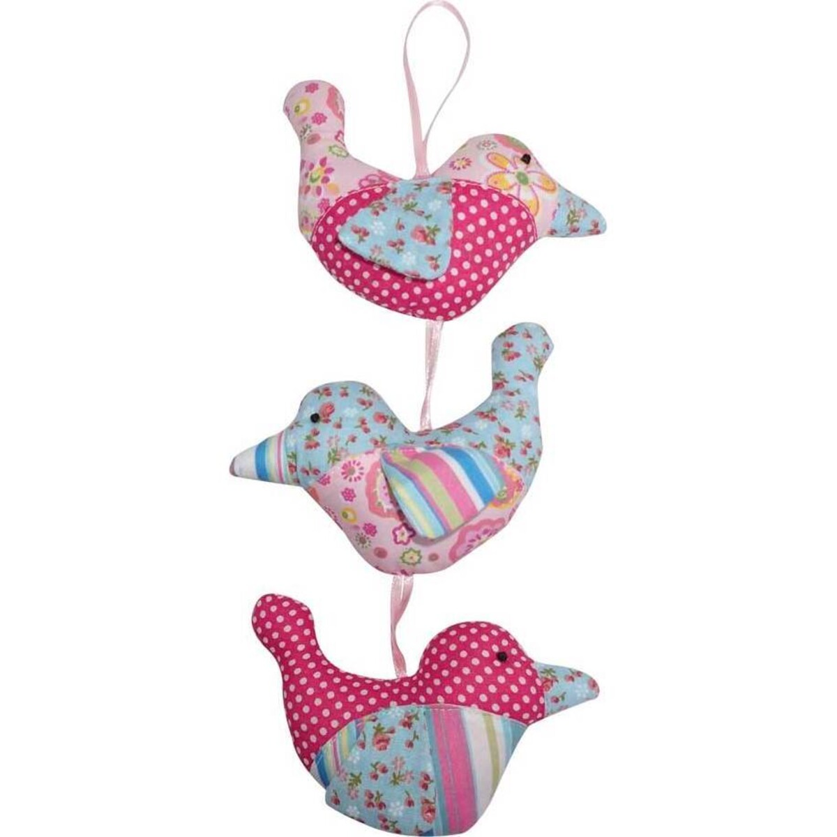 These hanging birds consist of three little birds hanging vertically one after the other with each one connected by a pink ribbon. All the birds have their own special colouring and pattern, and at the top is a pink ribbon loop that allows for easy hanging. The birds would look lovely hanging in a children's room, but are equally as wonderful hanging on a porch, in an entryway, or in a window. Although they're perfect for spring, they would still make great year - round d?©cor.