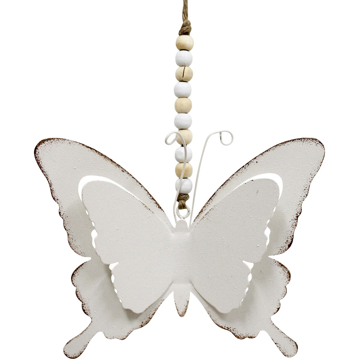 Bring the delicate beauty of nature into your space with the enchanting Hanging Butterfly White. This exquisite piece, measuring 11x2x13 cm, captures the elegance of the butterfly and transforms it into a timeless homeware charm. The butterfly's white silhouette is meticulously handcrafted from metal, ensuring each piece is unique with its own subtle variations, making no two exactly alike. Adorned with a strand of serene beads, it adds a touch of whimsy and organic texture to its design.