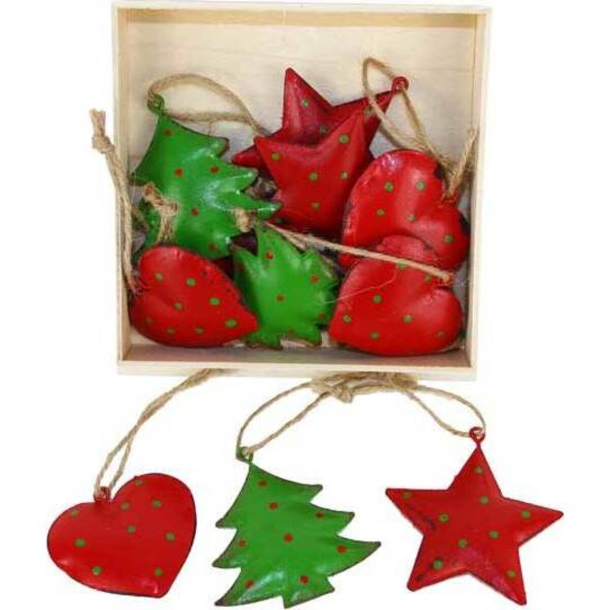 This set of tree decorations comes in three shapes each handcrafted from metal in the shape of star, tree and heart –three of the most and much loved symbols of Christmas that have endured the changing face of decor fashions. Made to suit the need of a typically shabby chic sort of decor these beautifully designed and finished to perfection tree ornaments are dainty and yet have a certain rustic charm to them that is quite refreshingly unique as possible. A great way to add that little elegant accent to trees and spaces that could do with some tiny bit of decor drama - this set truly encapsulates the drama of colour and the symbolism of the season with its simplicity.