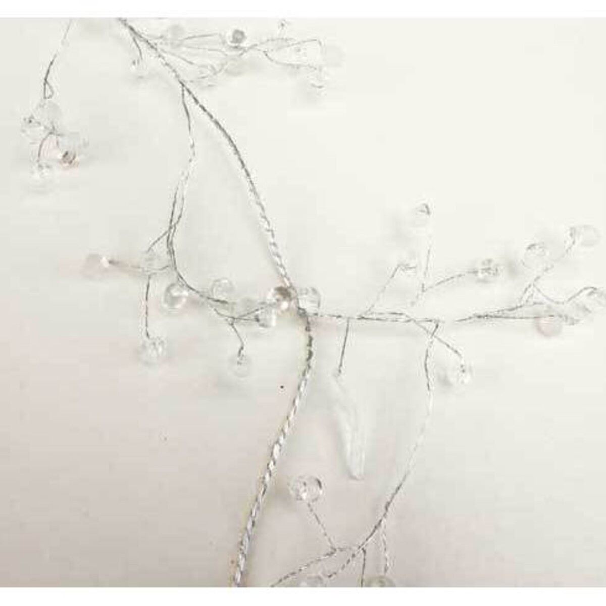 The Hanging Cristal Frost Clear comprises of plastic frost clear crystals superimposed on a wire of 120cm. This product has numerous branches alternating on the cord which binds the frost clear crystals. Guests at an event become aware of its presence naturally, as the ornamental item takes centre - stage with its appealing design and resplendent outlook. Users of this piece of decor have the option of utilizing it on various surfaces to emphasize a certain desired effect. The luxurious gift item or souvenir can accentuate the beauty of a dining area or bedroom and looks adorable too when lining up the hallway.