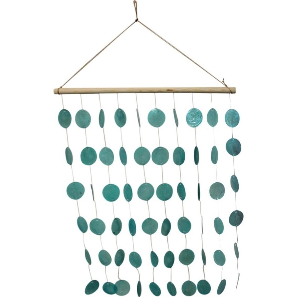 Bring some coastal chic to any interior with this distinctive and original home decor creation that is constructed with strands of capiz seashells in a cool, blue colour tone for a nice refreshing look. It is simple, sophisticated and affordably priced at the same time and looks great hanging at a client's home which is right near the beach. The wall in the foyer, hallway or living room will shine in a new light with this pretty wind chime that enhances well-being through beautiful sights and sounds.