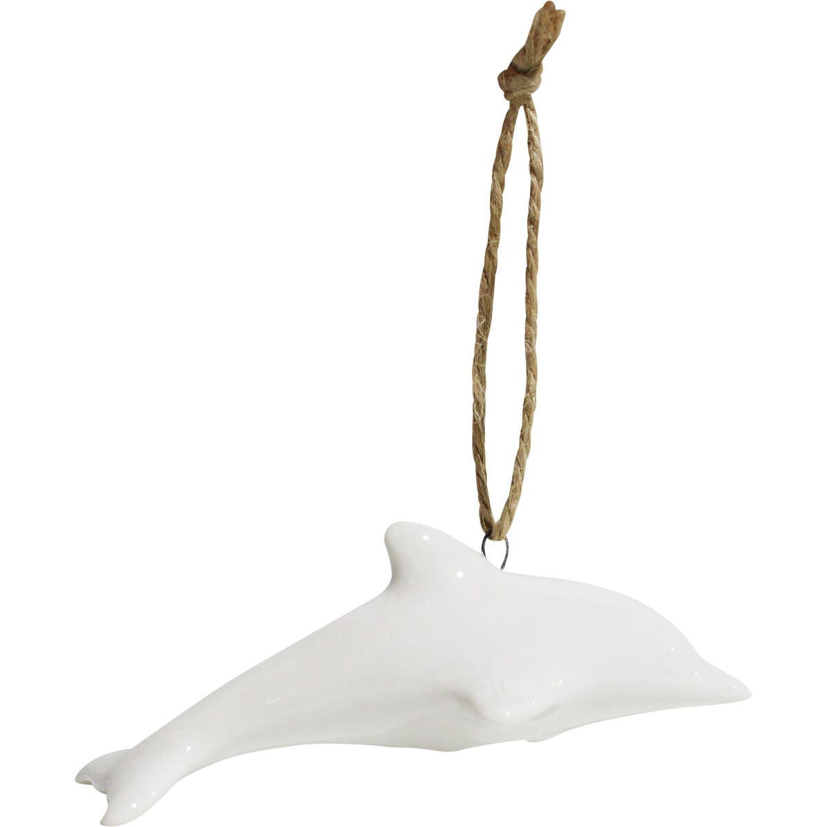 Featuring a hole at the top and a hanging twine accessory, the ornament has a bohemian touch that adds to its appeal. For those who prefer a more classic look, the twine can be replaced with a ribbon, transforming it into a traditional accent. It can be used to adorn a fireplace mantel, act as a statement piece on a magnetic board, or be placed anywhere that suits one's taste. Not limited to Christmas tree decorations, this ceramic dolphin ornament can also add a stunning touch to a child's nursery wall. It's adorable design and timeless charm make it a versatile and captivating piece for any dolphin lover or enthusiast of sea creatures.