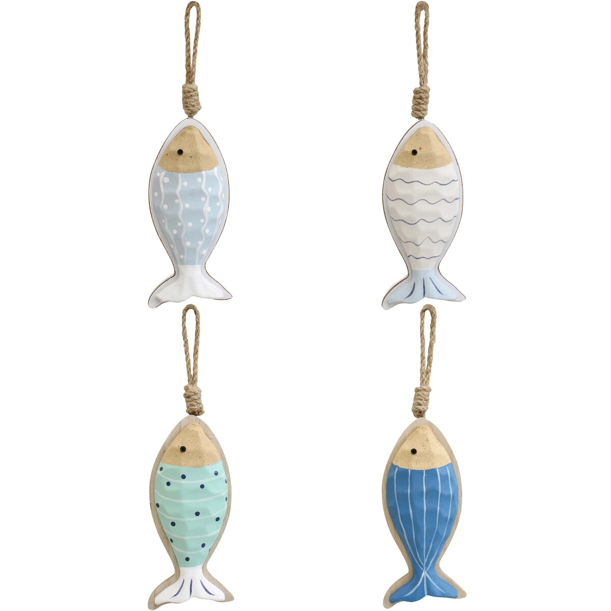 Introduce a touch of coastal charm to any space with the Hanging Fish Asstd. These exquisite adornments, measuring 7x16x2.5 cm plus hangers, are meticulously crafted from MDF and cotton. The hand-finished design ensures each piece has its unique character, featuring subtle variations and minor imperfections that enhance their artisanal appeal.