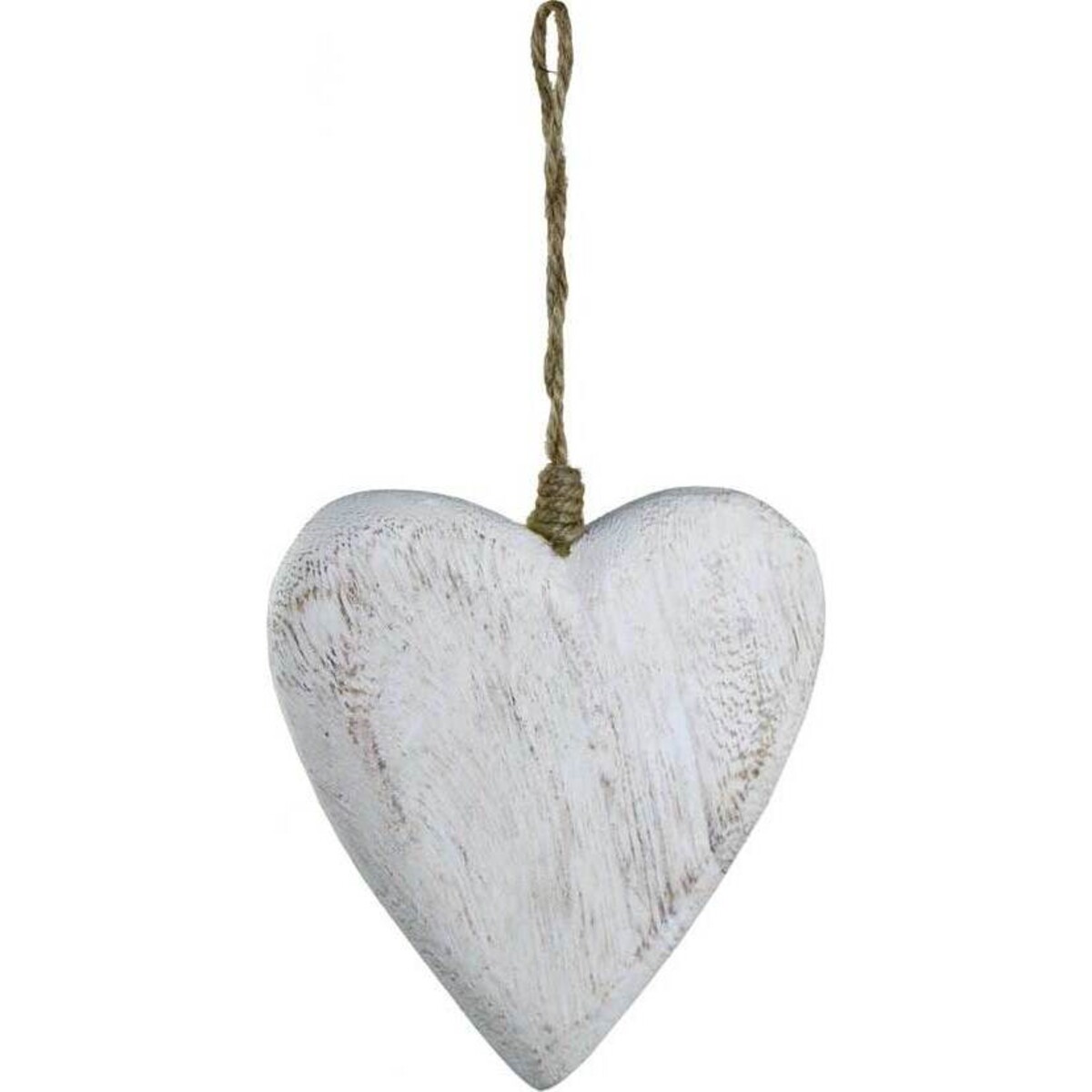 Hanging Heart Aged Wash is a heart - shaped artefact with the dimensions of 11x12x2 cm. It is designed entirely out of wood and is white in colour, hanging from a rope that is fixed at its top - centre position. People who organize events can acquire a few of these and use them to spruce up their venues. Hearts in many cases represent good fortune and this item can therefore be applied to convey warm wishes straight from the heart of a person. As such Hanging Heart Aged Wash may be presented to someone as an expression of goodwill.