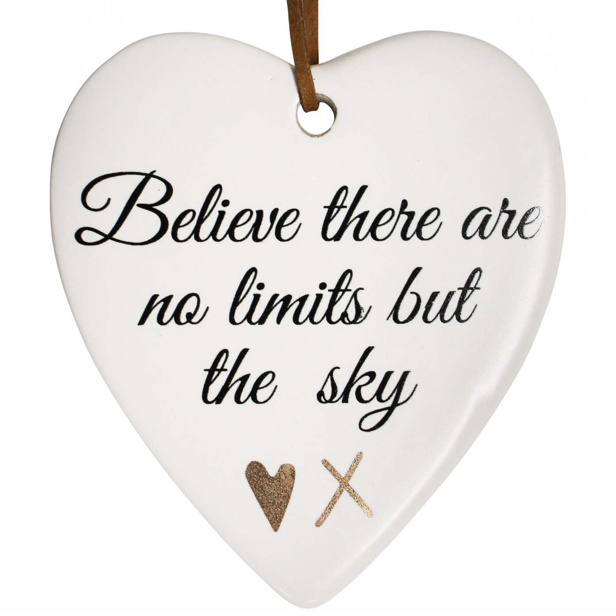 Made of ceramic and finished off with neat gold accents, this exclusive plaque feels a little special - almost like each one has been made with just that lucky recipient in mind. The quote reads, “Believe there are no limits but the sky” alongside a sweet gold heart and X at the bottom right corner - so it really is ideal as an inspiring daily message around any home or office space