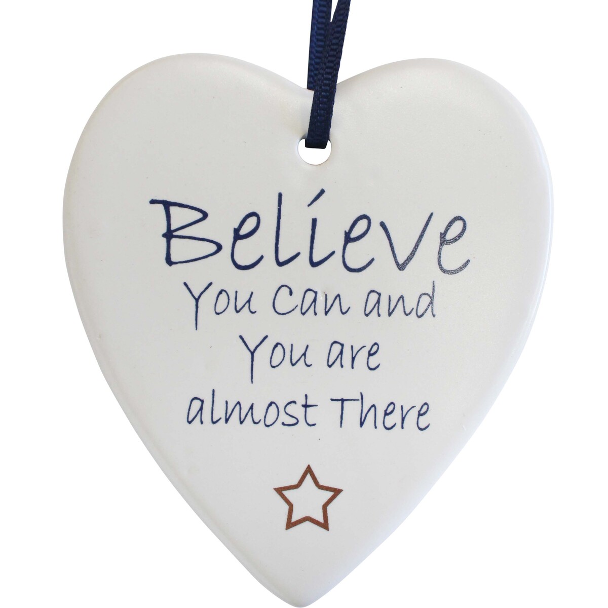Bask in the glorious choice of words that can help your life embark on the journey of success. You don't need to dress up such values on large posters or announce it out loud - simply let it come across to you on tiny little hearts that he shares the thought in the subtlest possible of ways. Here is one such delightful little ceramic made heart that has these words printed across it. You could use it like a tiny accent in your space - or give it away to someone who need the same inspiration in his or her life. The ceramic made heart is all of 9 cm in height and 8 cm in width and aligns beautifully with all kinds of spaces Gift it away - place it in your own room or simply use it like a tag on gifts - any which way its presence will be appreciated as much for the value of the words as it would be for it rather pleasing looks.