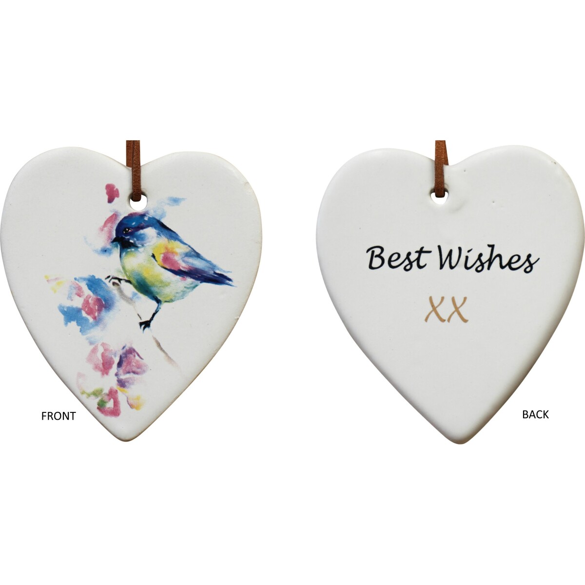 Not all gifts need to be large to be impressive. Somethings can best be said in small little words that are expressed well. Much like the best wishes you send through this tiny little heart that has been handcrafted from ceramic and given this beautiful bird print on one side. The other of course is printed with the two words-Best Wishes. Warms the heart instantly. The hangable little pendant like ceramic heart can eb gifted out like a party favour-used like a tag-its warmth and beauty of idea comes from its shape, the colours that makes up one of the faces and the smooth and gorgeous shape that you feel when you hold it in your hand, adds colour and a sense of cheer to any space of course. When received as a gift it is bound to bring in the same cheeriness and love that such tiny gifts always bring.
