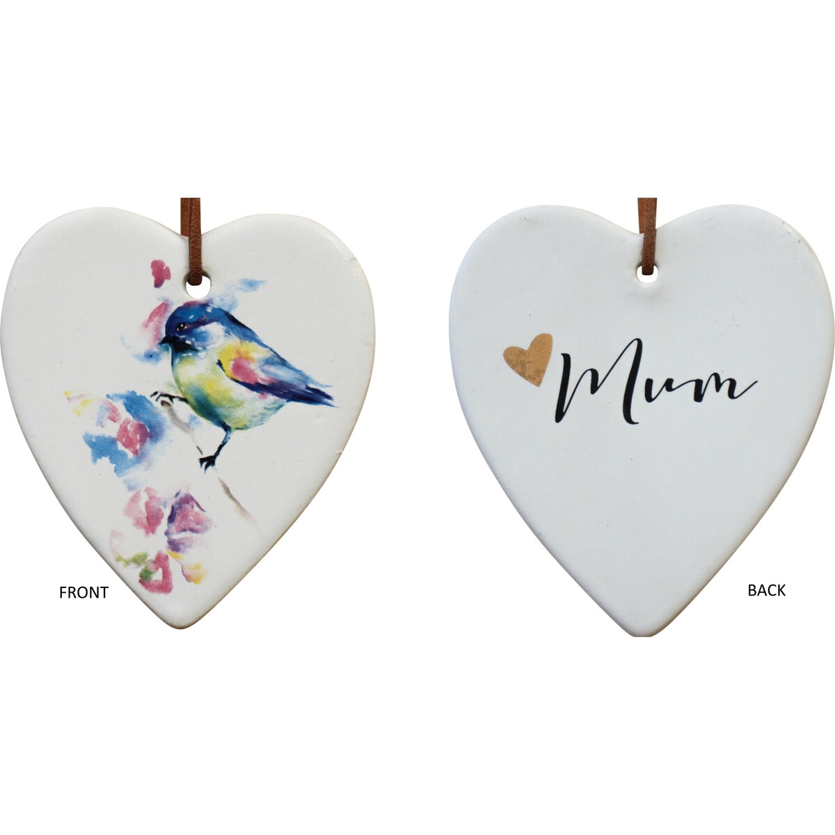 The sheer beauty of this piece lies as much in little details that make it so endearing as to the fact that it has been created keeping in kind that little gifts have adequate potency to create a special kind of effect. The little heat simply has the word Mum in a gorgeous print in black with little golden heart tucked in above. The white of the backdrop making it seem more pristine and beautiful. The other side has this bird in a riot of colours of nature. Sling able and hangable with the ribbon it comes with-this little pendant like gift is a mere 9 cm in height and 8 cm in width and makes a delightful accent that could be added to a larger gift or be given away like it is. Will be loved for its tiny yet beautiful design and unique looks.