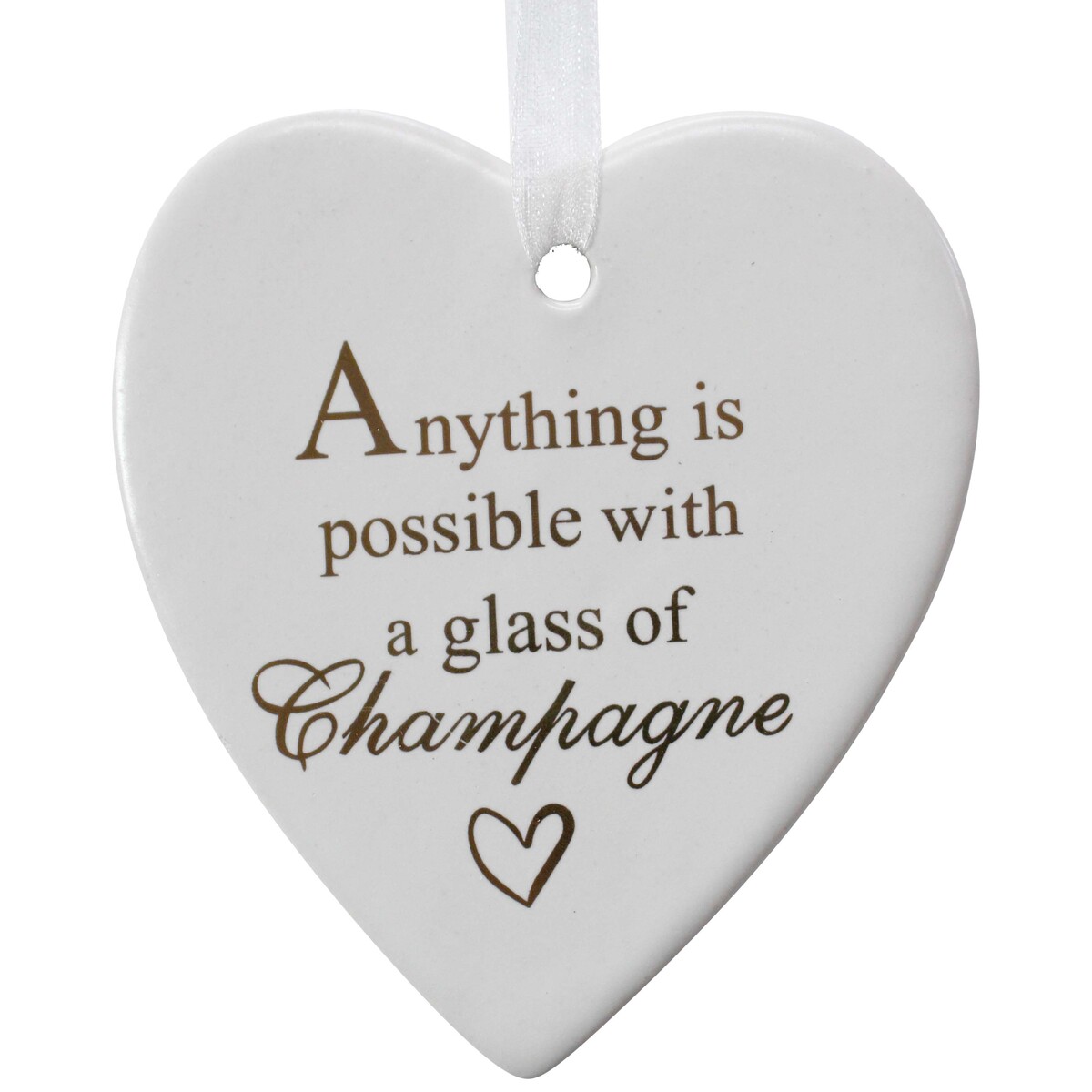 This tiny ceramic heart truly replicates what your desire of your heart is-a bottle of champagne that could take care of all your worries and right enough, such a great drink as champagne sends you to quite another level of happiness taking away your worries and helping you ease out. Make this love for things wonderful be seen on the tag which you could place in several places - maybe along with a gift that carries one such bottle or in your centerpiece decoration for special dinners and when you are entertaining guests. Give it away as a party favour if you hosted a special occasion party and are thinking of handing out favours. Whatever the reason anyone who loves the good things in life will cherish this tiny message on the tag. The tag has a tiny little ribbon that allows it to be suspended and hung from nay place with ease. If you wish to make it longer it could easily be done. The white ceramic hearts is pretty, dainty and hard to be missed.