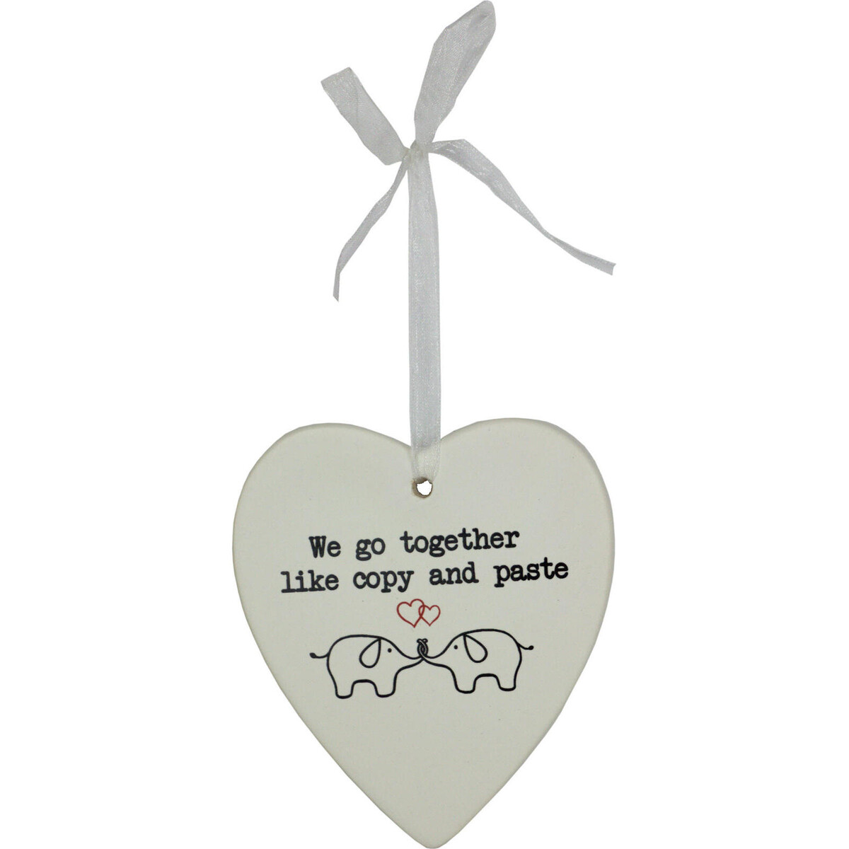 Things small do pack in a far more bigger punch - after all it is the delicate little heart with its superb printing that makes this joy filled little pieces so special. A mere 9 cm in height, it celebrates a certain kind of love that is matchless. Tiny yet impactful, the slot for ribbon in a white colour makes it easy to place on walls, knobs, handles or hang it from gifts as much. When the heart wells up with emotions that defy spoken words, you could pretty much rely on this beautiful and elegantly cratered handmade heart in ceramic to do the needful. The creamy white background places the onus on the fine printed graphic showcasing two tiny elephants whose trunks join in to create a little pink heart - what could be more endearing? Hang it from spaces that you call yours - place in areas where you would want your loved one to simply walk past and be surprised by your sweet thought - after all love can be spoken in so many languages and one as tender and tiny as this is truly special.