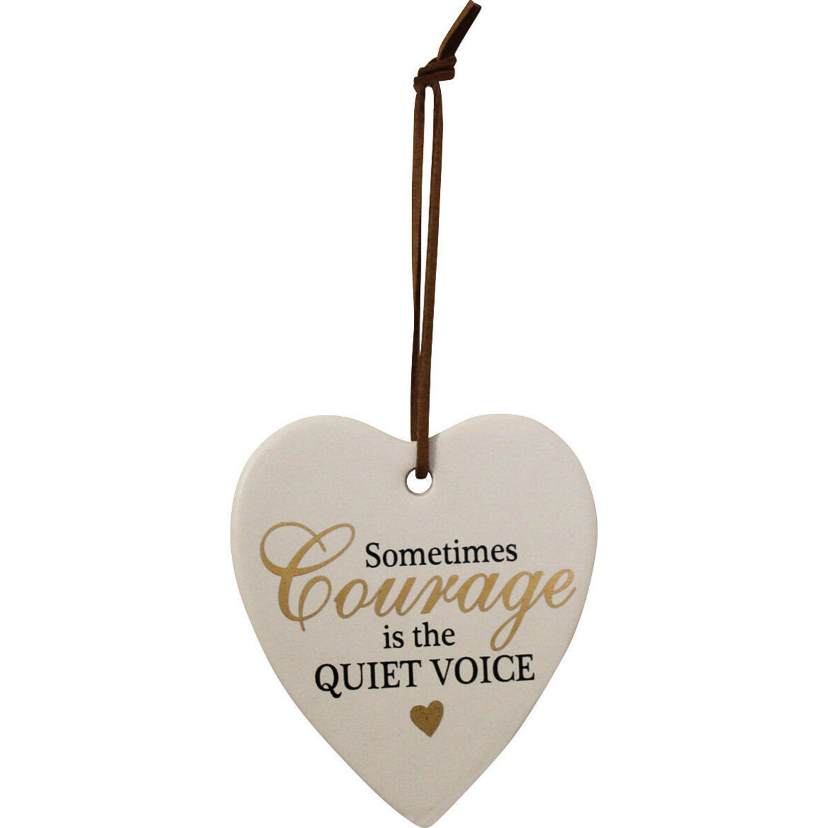 Whether you need something that brightens up a wall or you want a stylish ornament for an office or home, this courage hanging heart is an excellent addition to any space. Beautifully designed in the shape of a ceramic heart, this ornament is easy to hang with the ribbon provided.