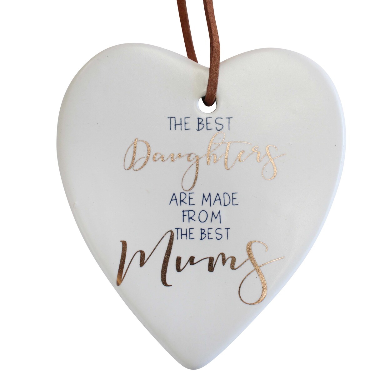 This handcrafted ceramic heart has a nice subtle message in a handwritten bold script that can tell a story, bring back memories, convey love or be like a little keepsake to cherish for both mothers and daughters. It comes ready to hang around the house or in an office and can even be used as an ornament to hang on the Christmas tree. Its neutral colour palette can be matched with any colour scheme so feel free to hang this anywhere you wish especially in clever spaces that will get a quick look or pick-me-up. This will make a lovely Christmas gift and stocking filler too!